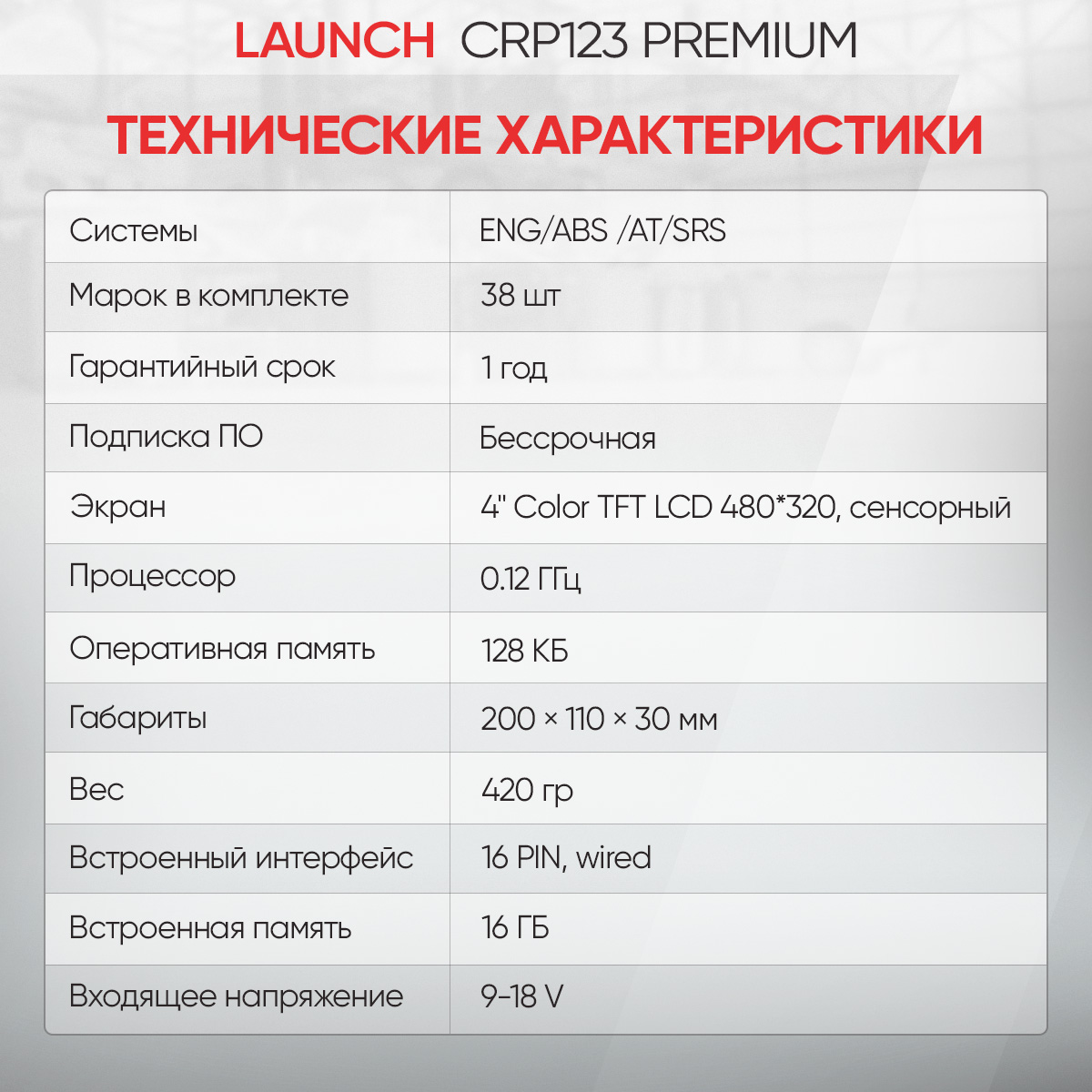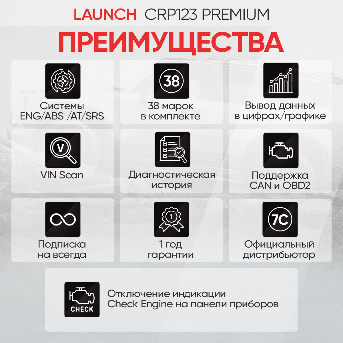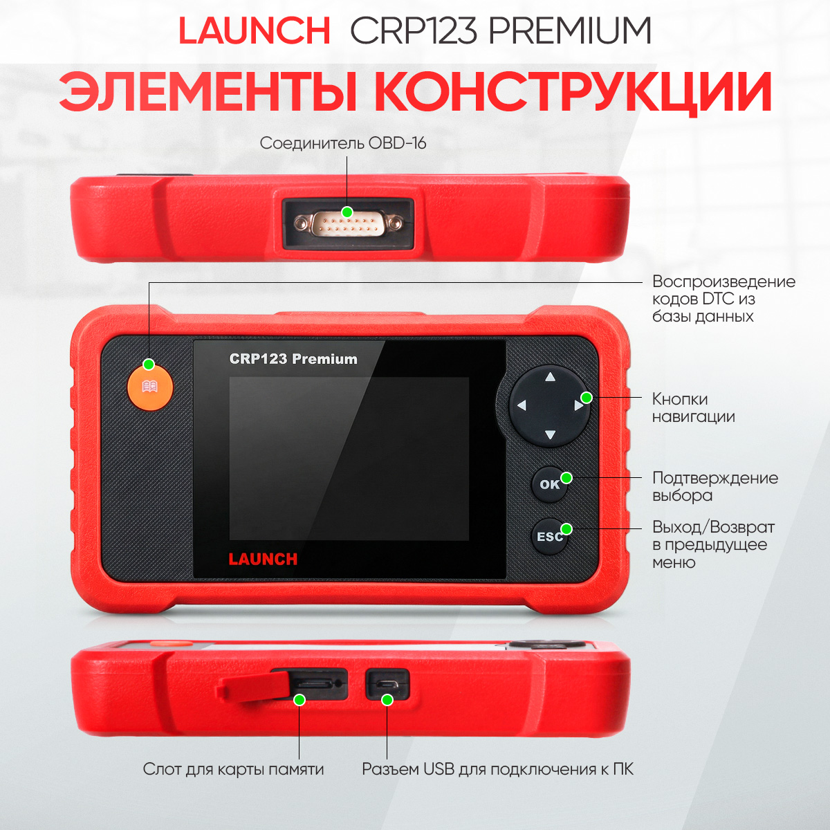 Launch CRP123 Premium компактный сканер для быстрой диагностики электронных систем автомобилей европейского, азиатского и американского производства. Поддерживает все основные протоколы диагностики OBDII и EOBD во всех существующих режимах, в том числе работает по шине CAN.