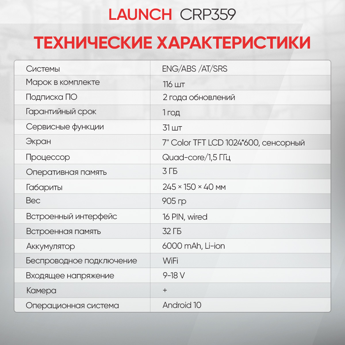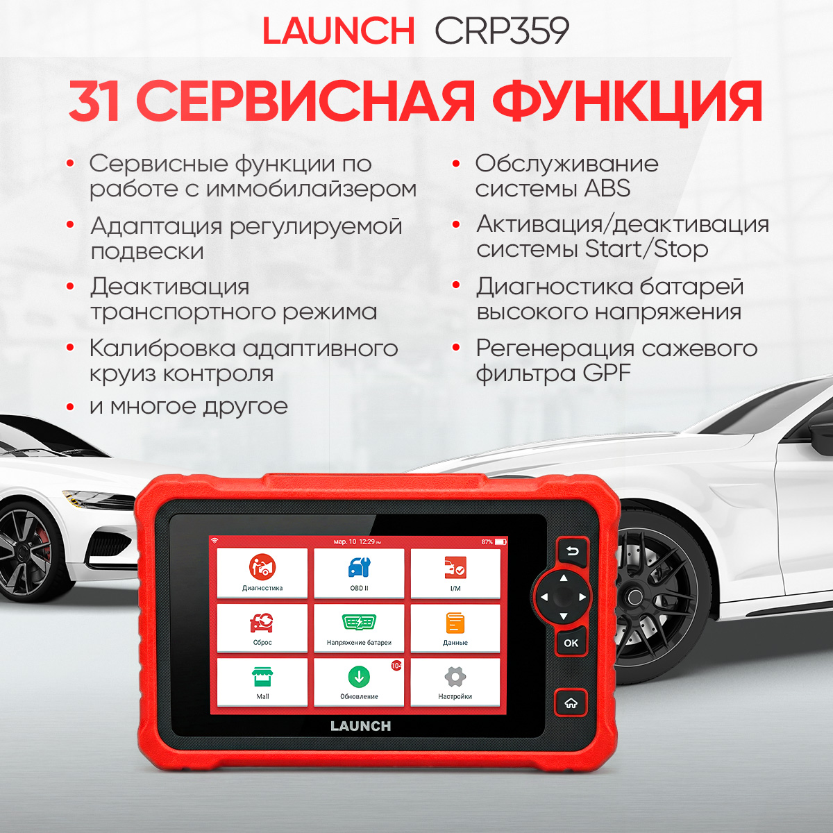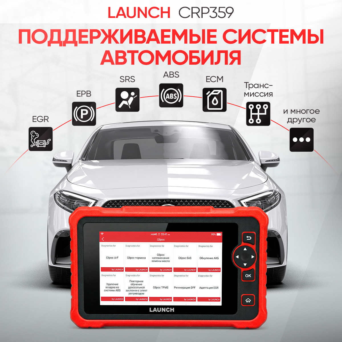 Launch CRP 359 - новый диагностический сканер в линейке Launch Creader Professional. В первую очередь, сканер предназначен для сервисного обслуживания современных легковых автомобилей, в том числе там, где используется протоколы DoIP и CAN FD. Сканер отлично подойдет мастерам-приемщикам и механикам. В базовый комплект ПО входит 116 марок с возможностью диагностики всех систем и 31 сервисная функция в меню для быстрого доступа.