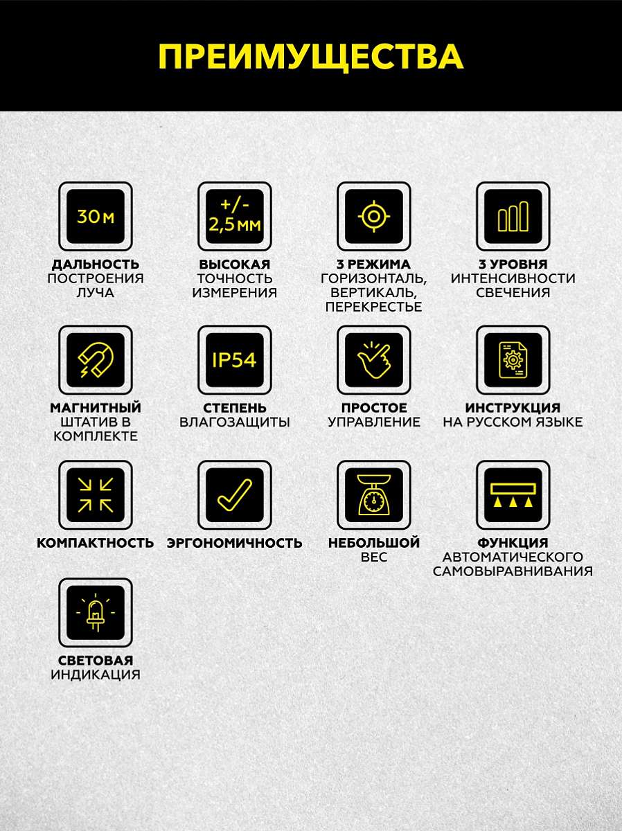 - Функция автоматического самовыравнивания +/- 4°