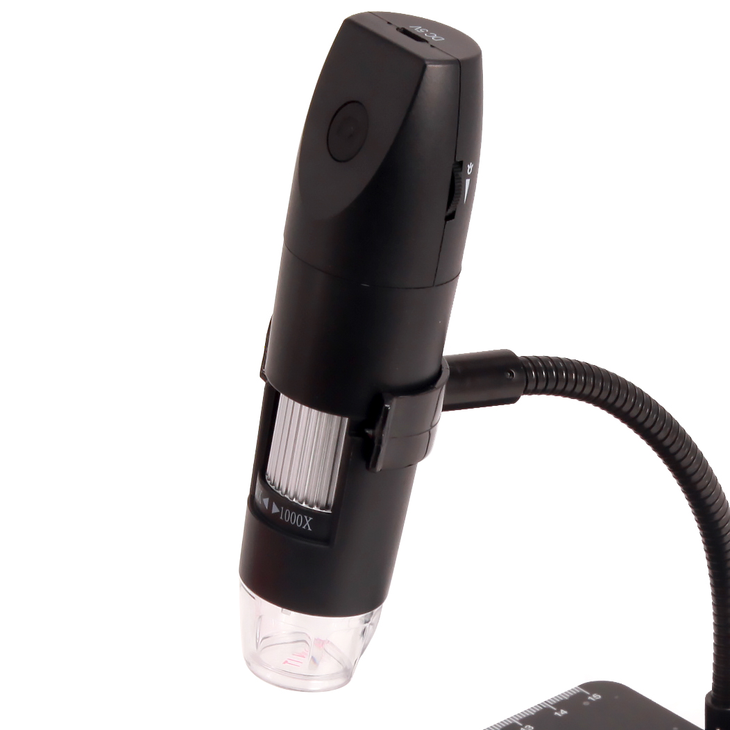 Оптический прибор работает как цифровая камера: исследуемые объекты можно увеличивать, записывать на видео или фотографировать в разрешении 1920х1080. В комплект входят площадка с разметкой и настольный штатив, на который можно закрепить микроскоп. Встроенная подсветка микроскопа из 8 светодиодов с регулируемой яркостью равномерно освещает исследуемый объект и позволяет подобрать оптимальный уровень освещения для работы с любым объектом.