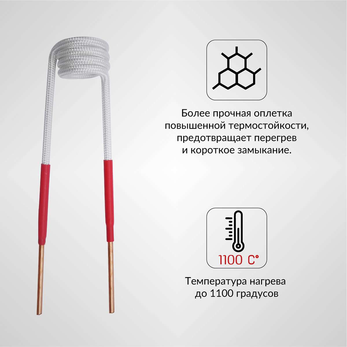 длиной 145 мм. диаметр 20 мм. Температура нагрева до 1000 градусов