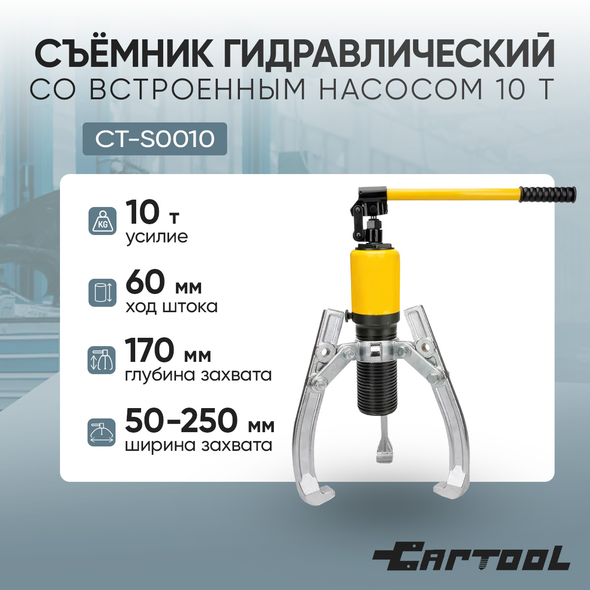 Съемник гидравлический 10 т с выносным насосом Car-Tool CT-10700 — это надёжный инструмент профессионального уровня, предназначенный для демонтажа плотнозакреплённых деталей: подшипников, шкивов, ступиц, шестерён и других элементов, требующих высокой силы извлечения.