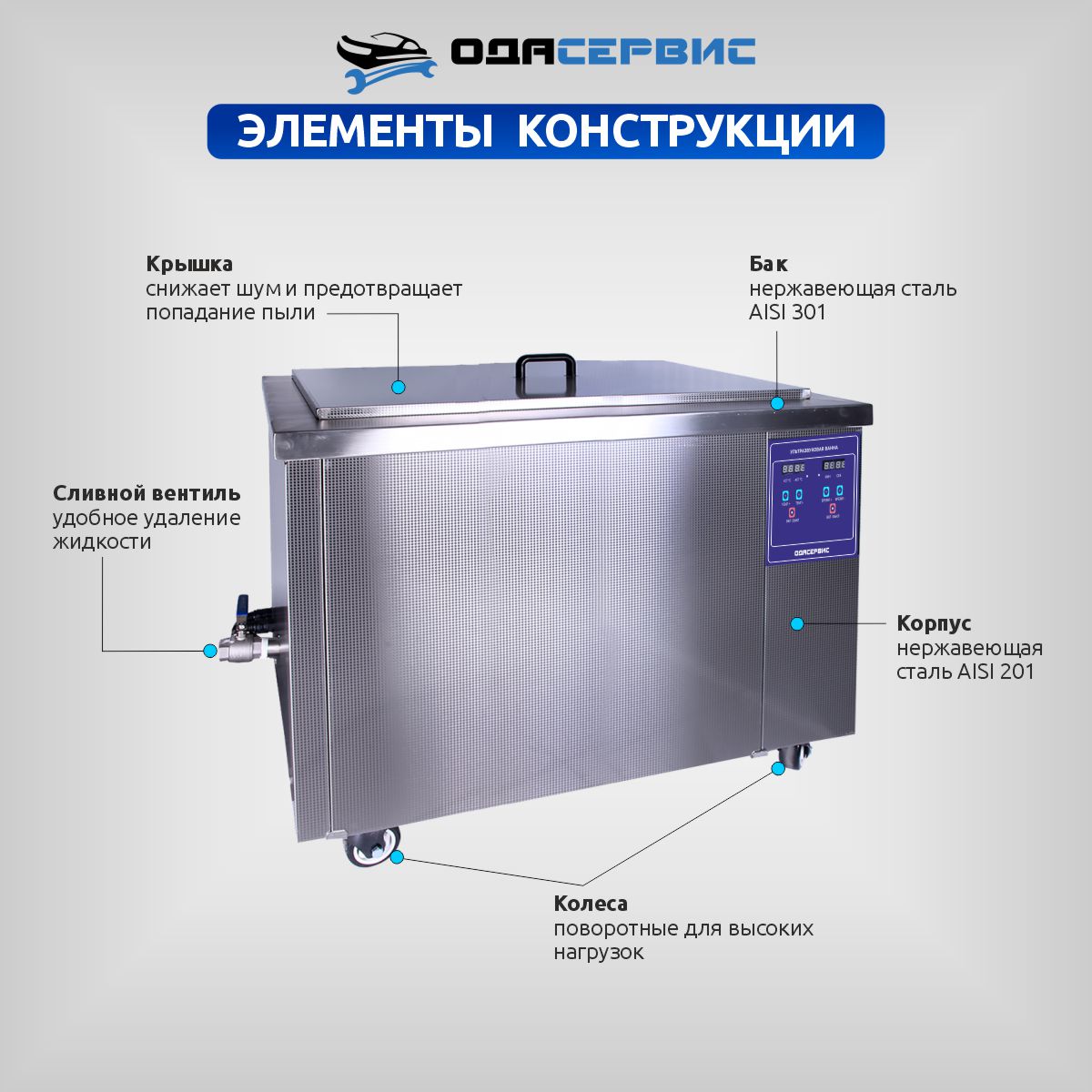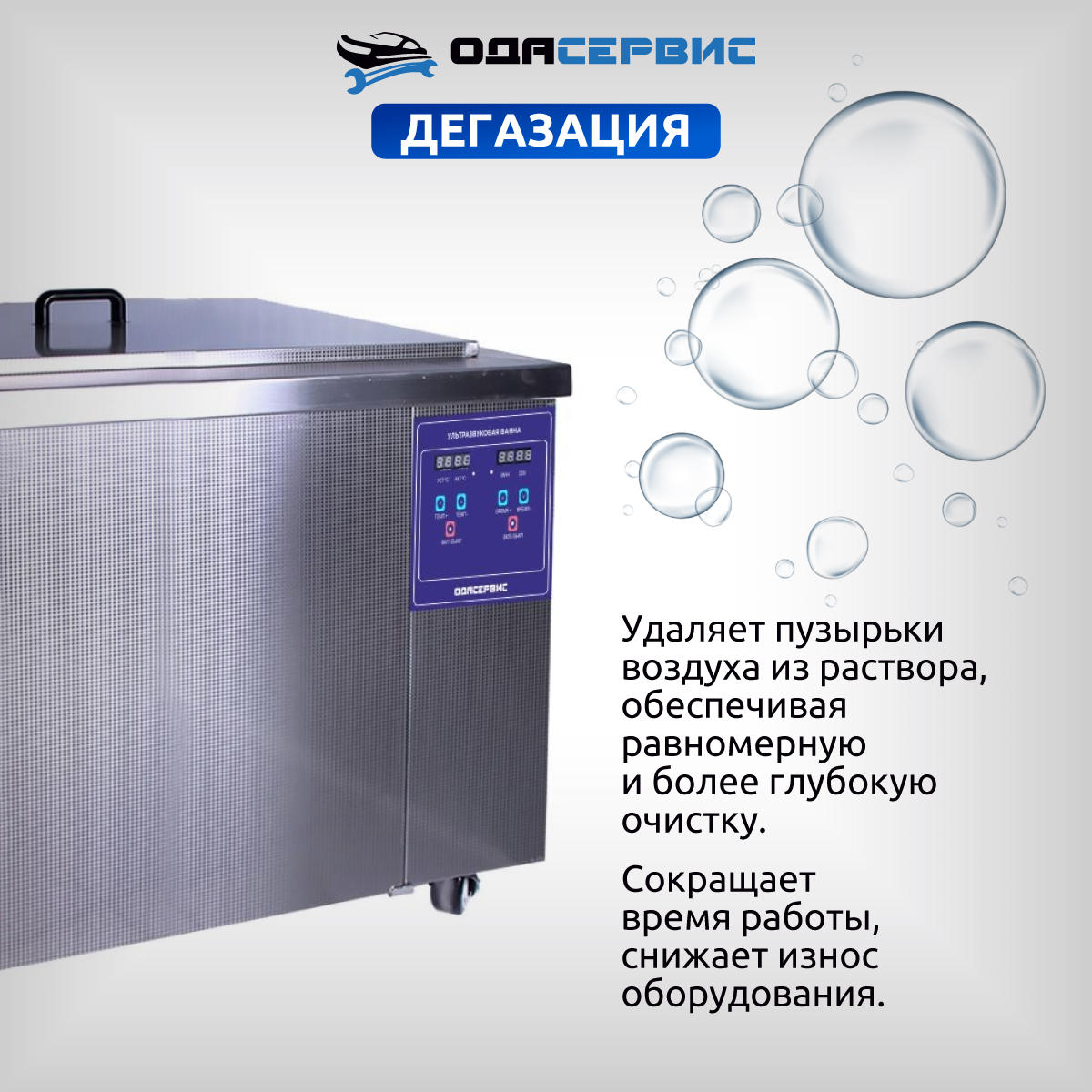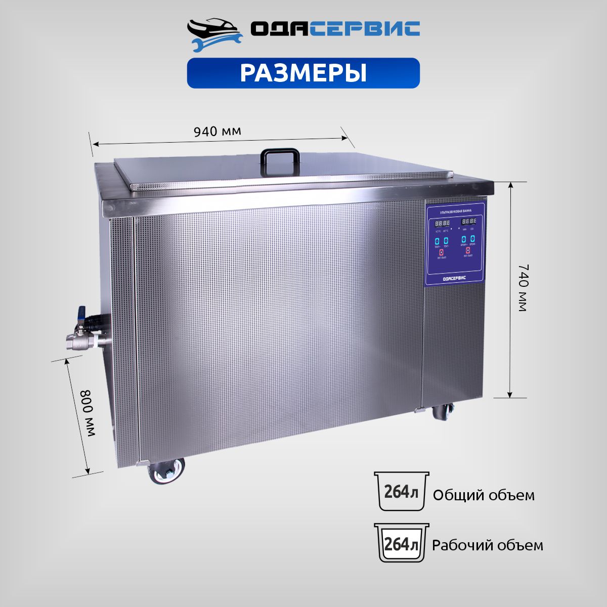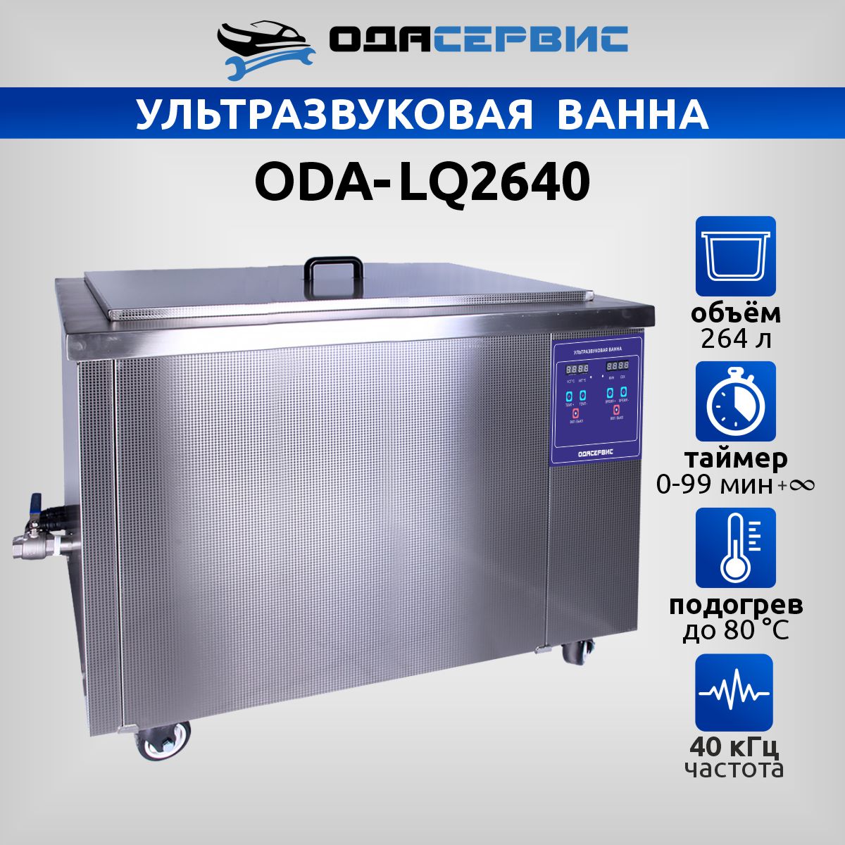 ОДА Сервис ODA-LQ2640 — это промышленная ультразвуковая ванна на 264 литра с регулировкой мощности ультразвука, электронным таймером и подогревом. Такие ванны имеют широкий спектр применения, от мойки крупных и не очень деталей в автосервисе, до использования на производстве.