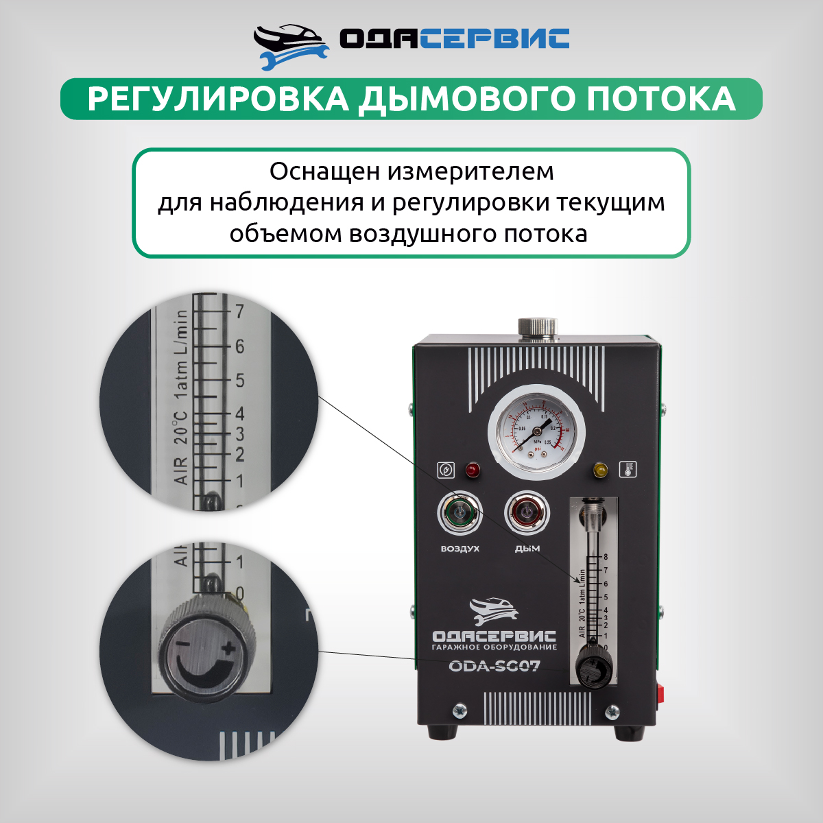 Дымогенератор прост в управлении и безопасен в использовании, имеет встроенный воздушный насос и два рабочих режима. Кроме того, имеет регулируемый расходомер воздуха, что позволяет более эффективно произвести диагностику.