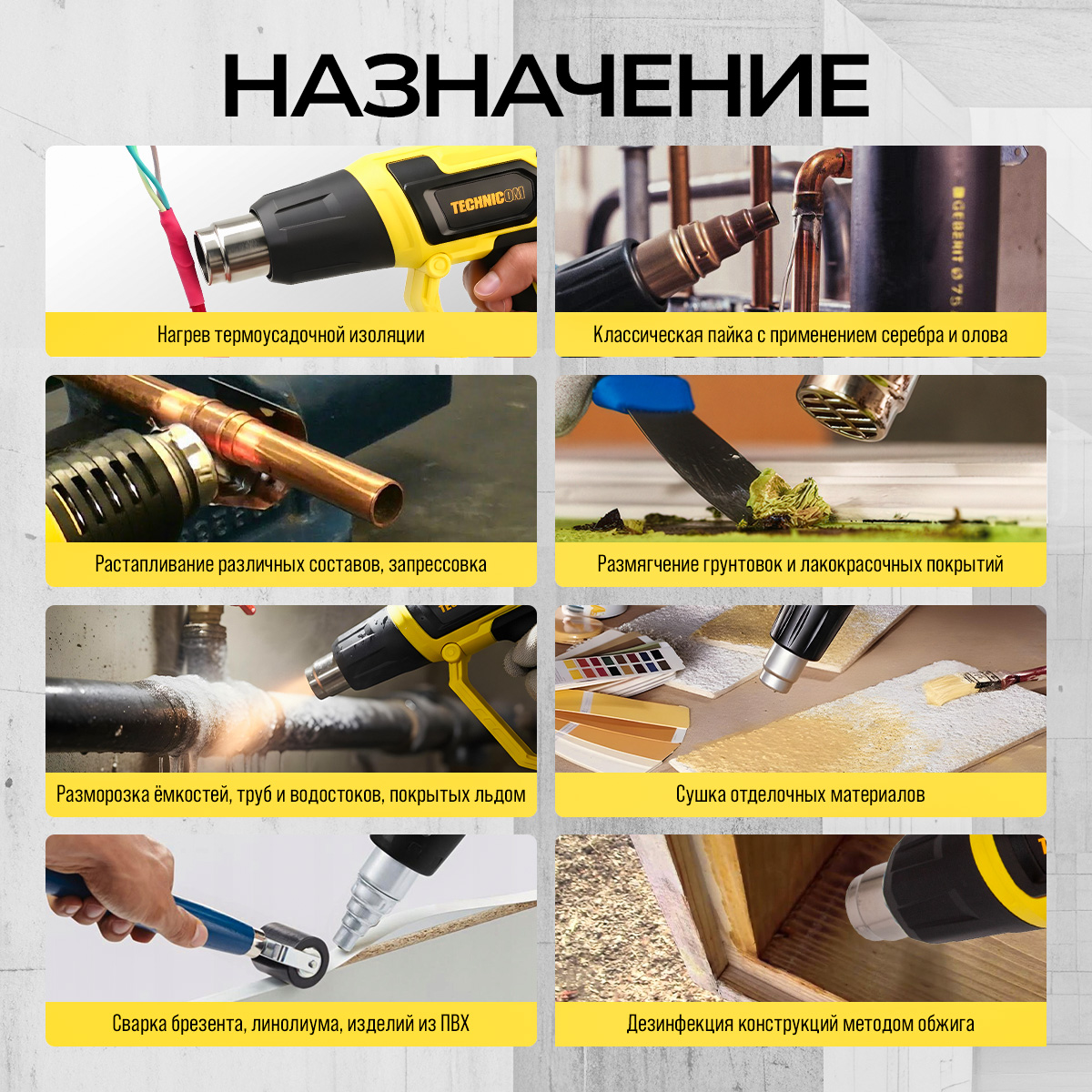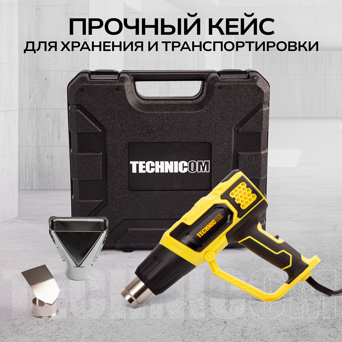 Фен строительный TECHNICOM TC-HG2000 — универсальный термовоздушный инструмент для ремонта, отделки и сервисных работ. Мощный нагревательный элемент на 2000 Вт быстро выводит фен на рабочие режимы, а продуманная эргономика с удобной рукояткой и небольшим весом (0,8 кг) обеспечивает уверенный контроль при длительной работе. Инструмент одинаково хорошо подходит для дома, мастерской и профессионального выезда на объект.