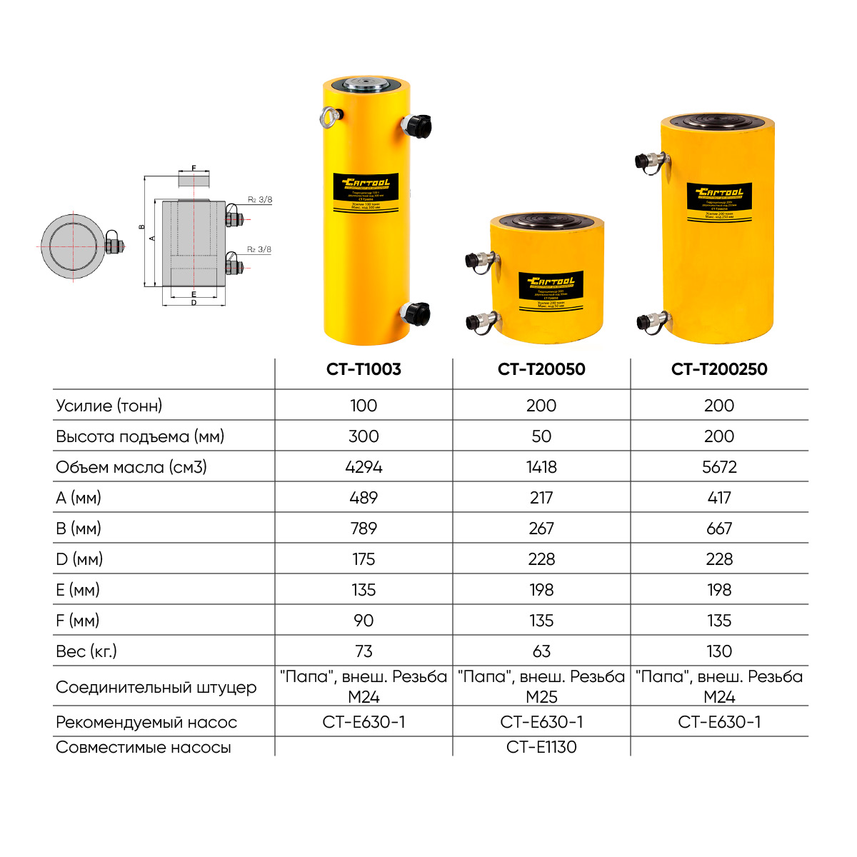 Гидроцилиндр 200 т двухполостной, ход 50 мм, Car-Tool CT-T20050