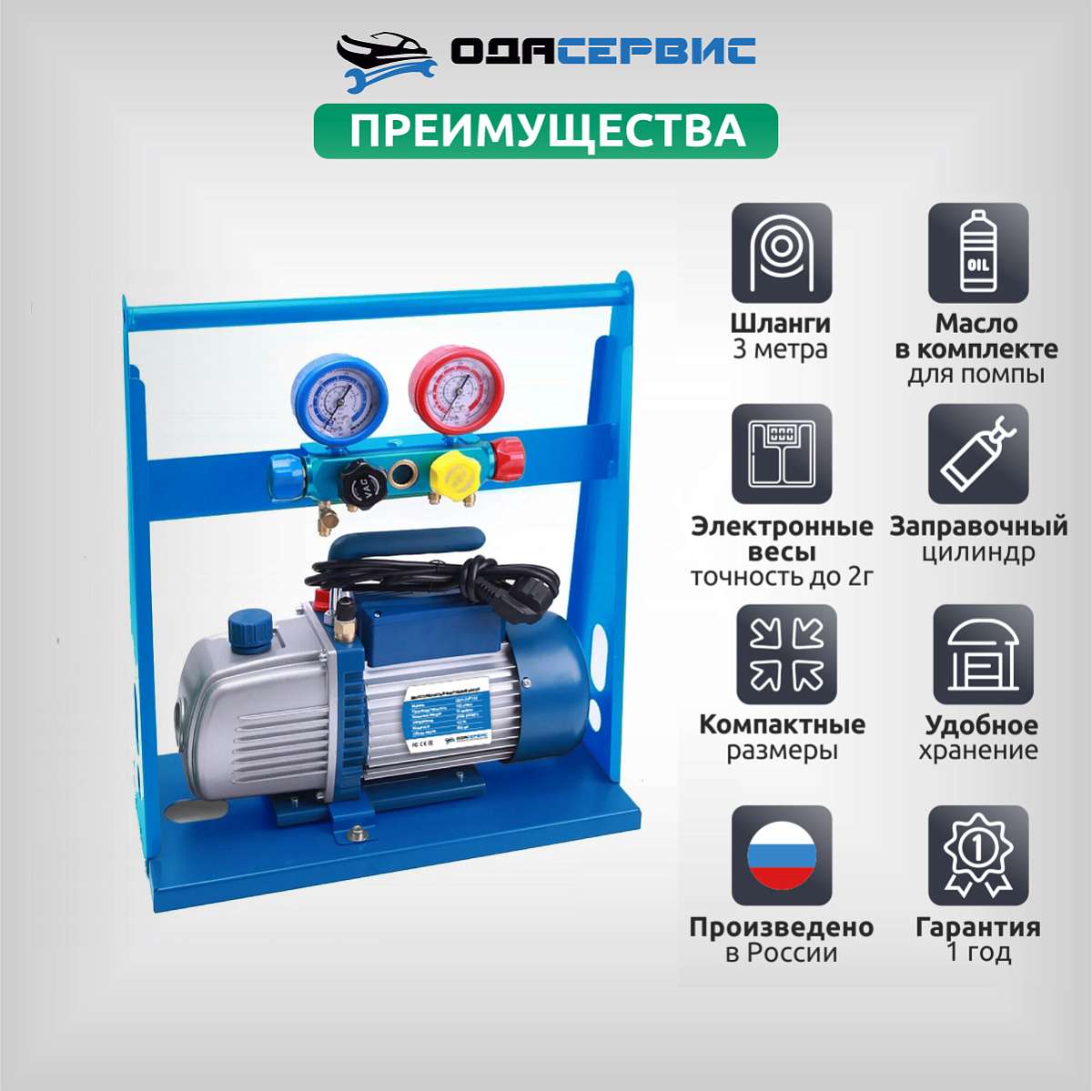 ОДА Сервис AC-2026 ручная заправочная станция для кондиционеров. Способна диагностировать и заправлять автокондиционеры, климатические установки и другие системы, работающие на хладагенте R134A.