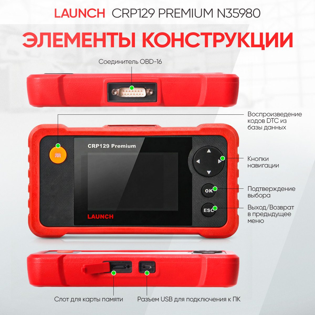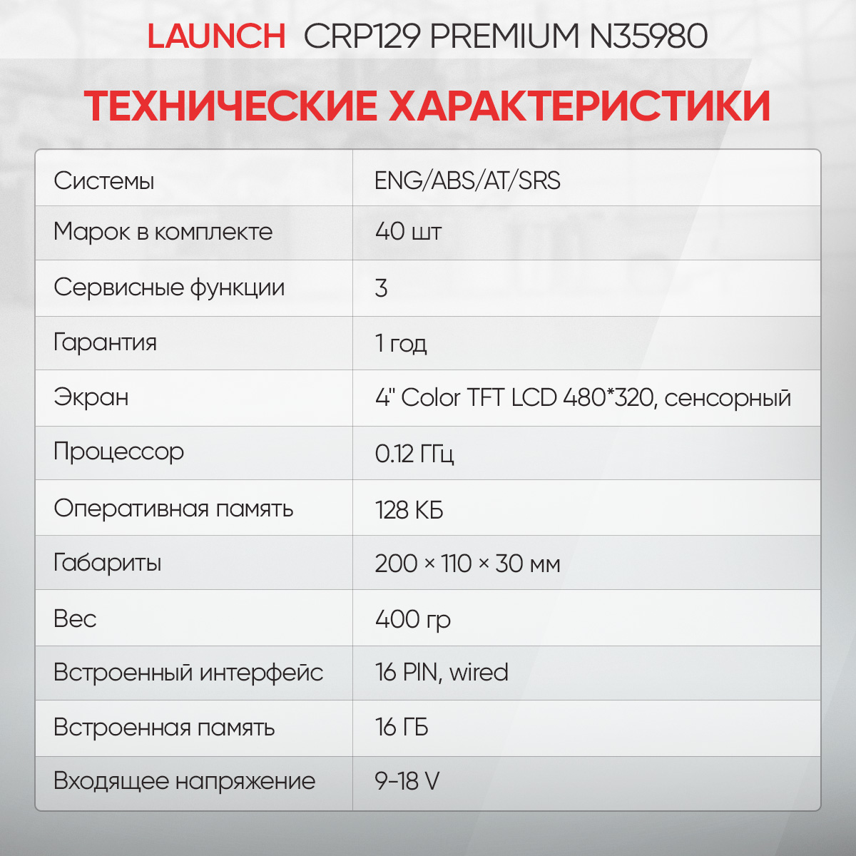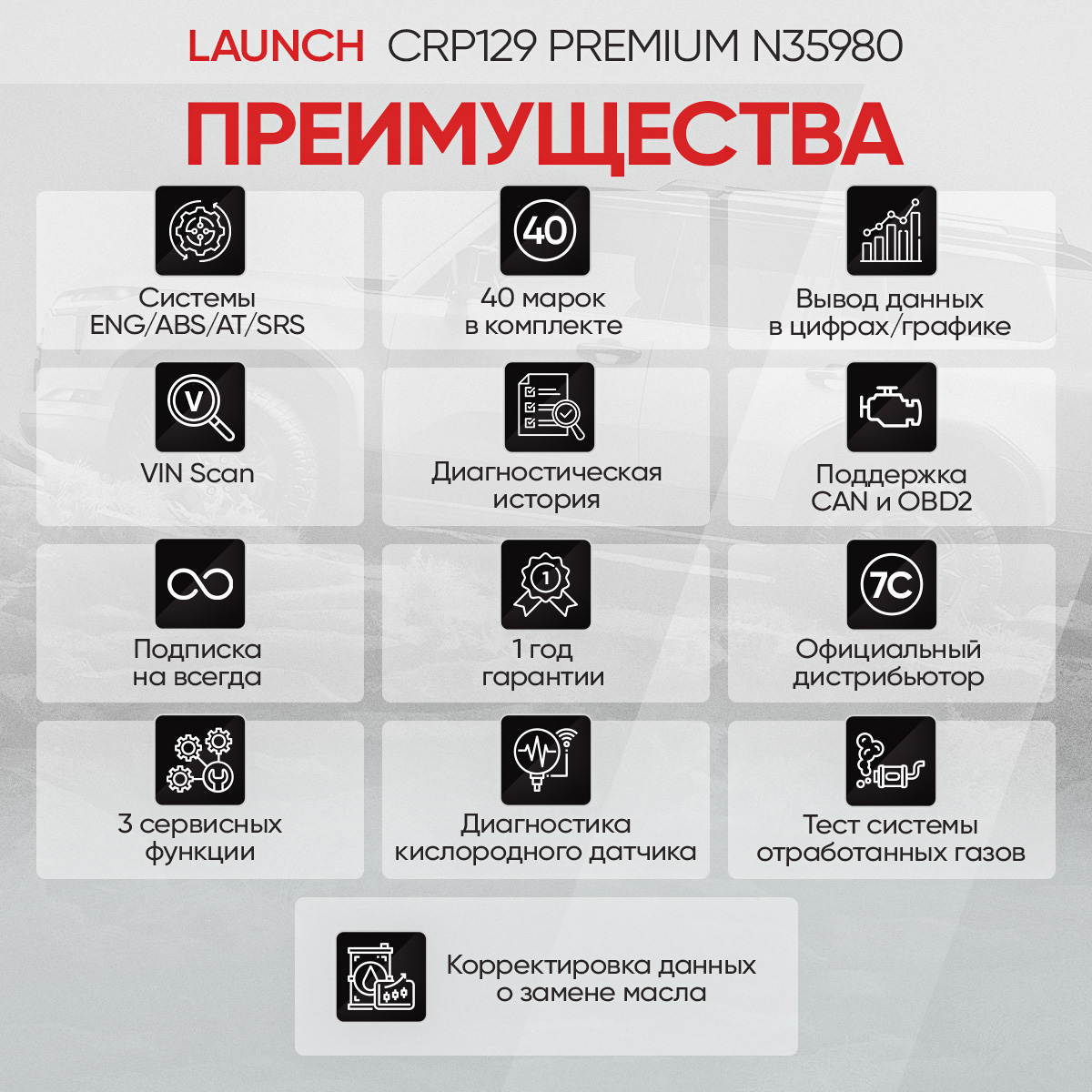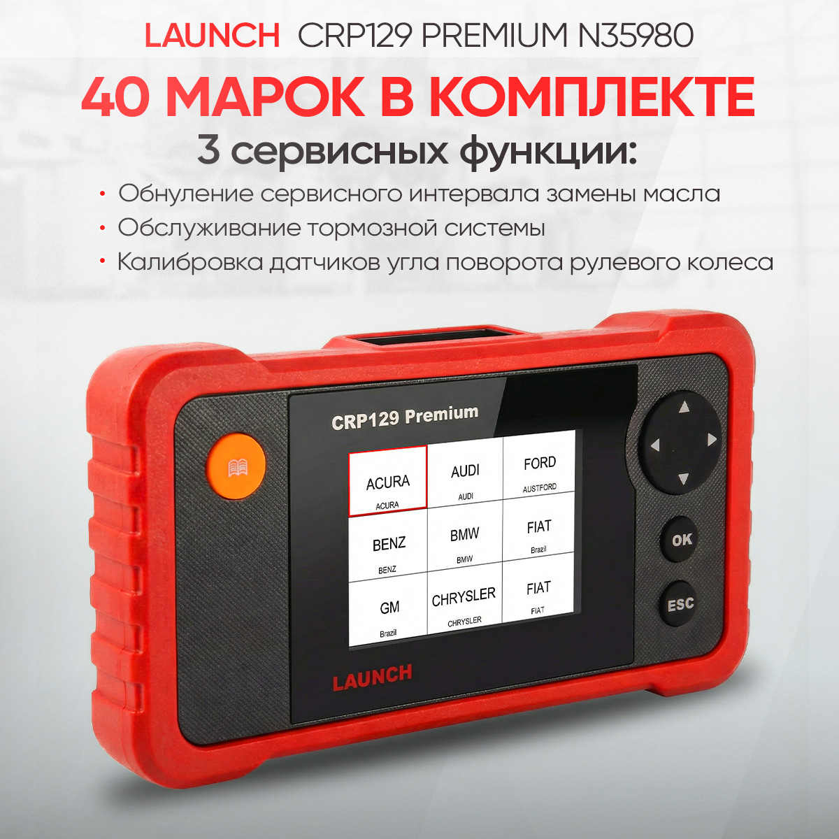 Launch CRP129 Premium - компактный сканер для быстрой диагностики электронных систем автомобилей европейского, азиатского и американского производства. В комплект входит 40 марок авто, по которым вы сможете диагностировать такие системы как ENG/ABS /AT/SRS. Также поддерживает все основные протоколы диагностики OBDII и EOBD во всех существующих режимах, в том числе работает по шине CAN. Для сервисного обслуживания, сканер сможет сбросить сервисный интервал по замене масла, откалибровать датчик угла положения руля и развести суппорта.