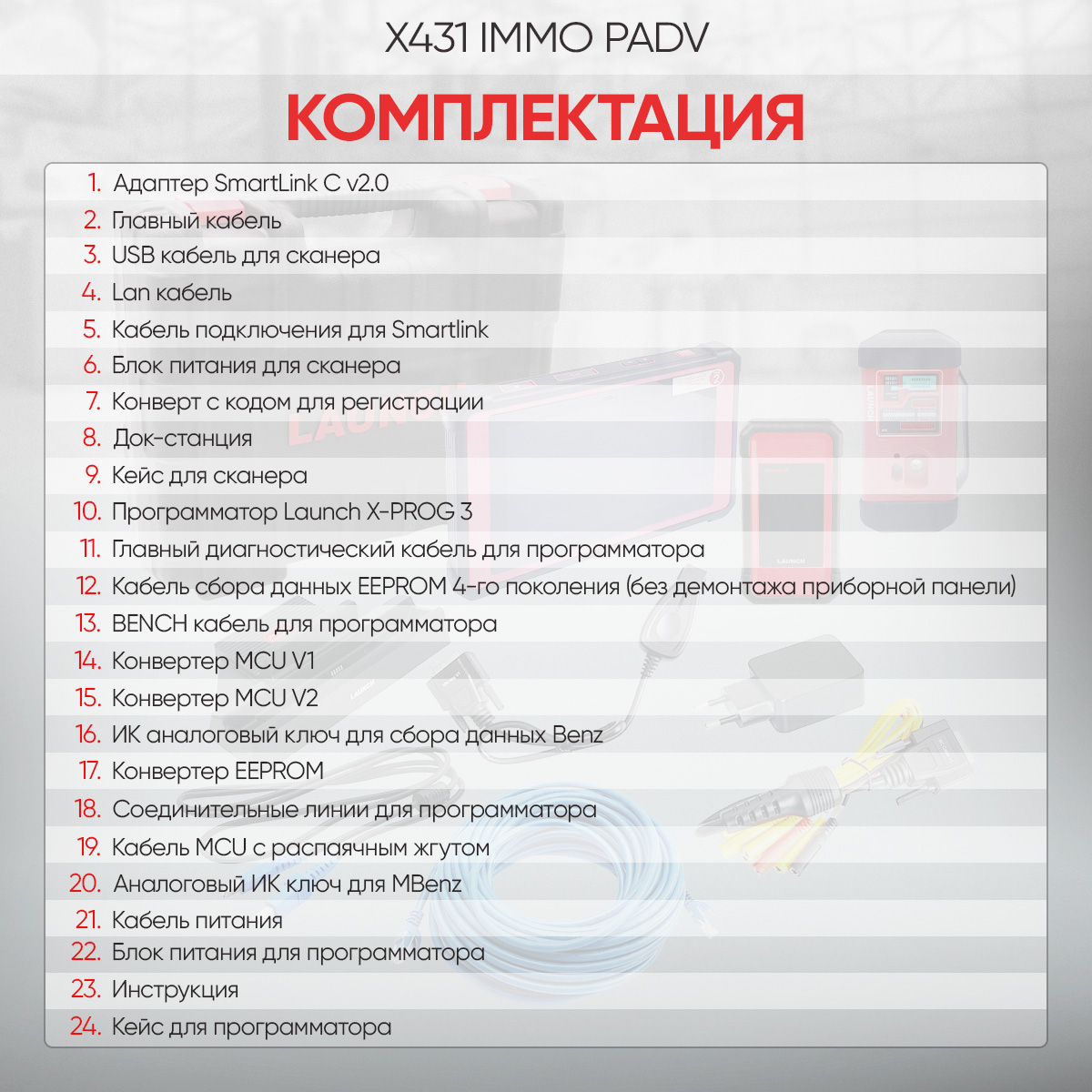 Launch X431 IMMO PADV - это специальная версия диагностического сканера, из флагманской линейки Launch, X431 PADV. Данная версия имеет расширенные функции программирования ЭБУ и иммобилайзера, а также в комплекте программатор XPROG3. По возможностям диагностики, обе версии сканера, у которых в комплекте 3 года обновления и более 30 сервисных программ, одинаковые.