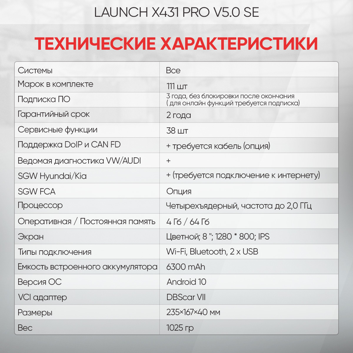 Launch X-431 PRO v5.0 SE - это 5-ое поколение популярной серии сканеров PRO от компании LAUNCH для легкового и легкого коммерческого транспорта.
