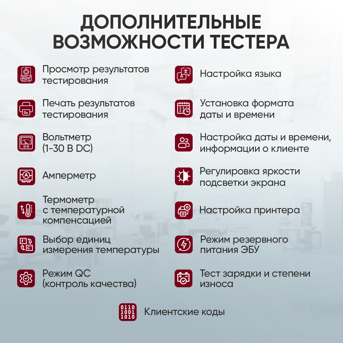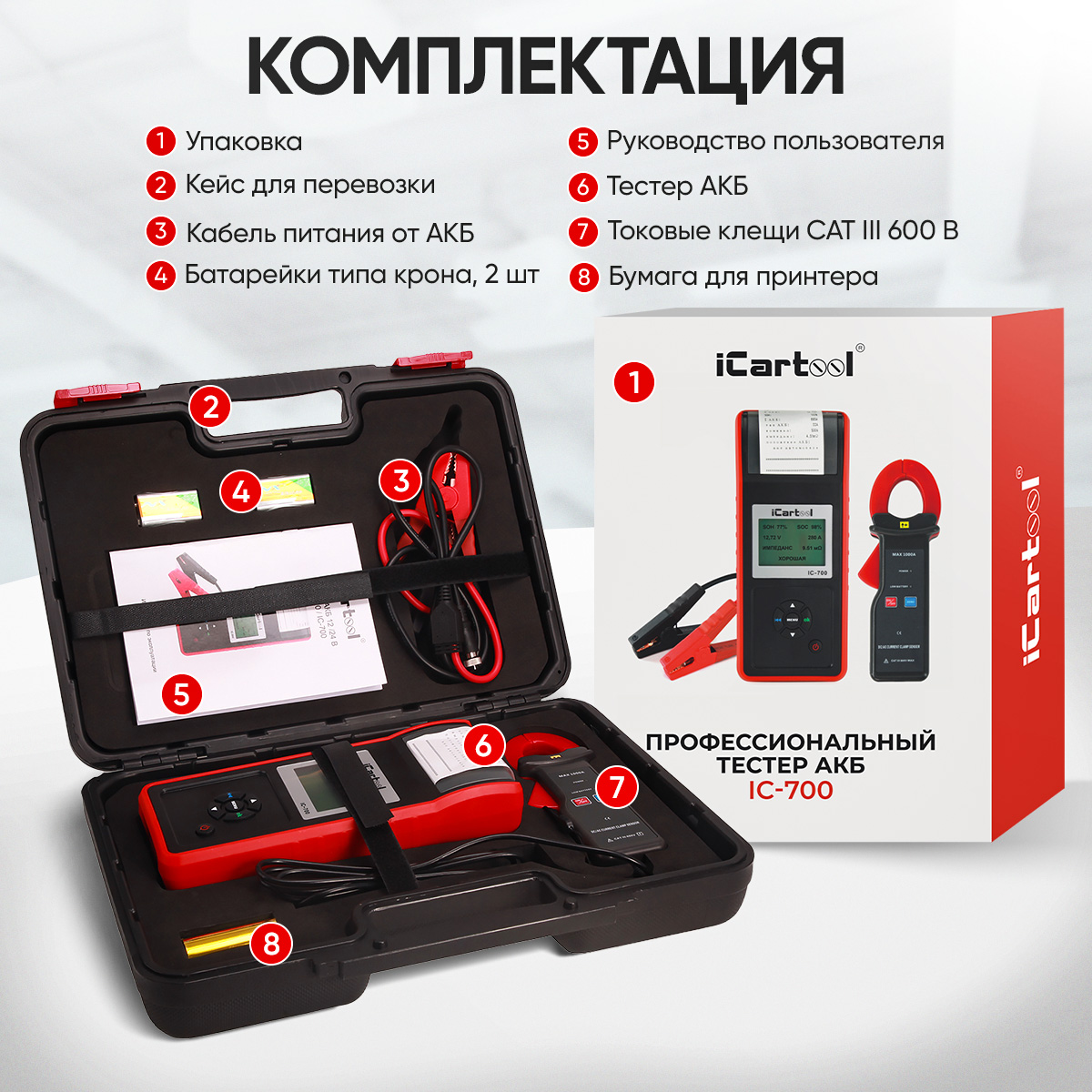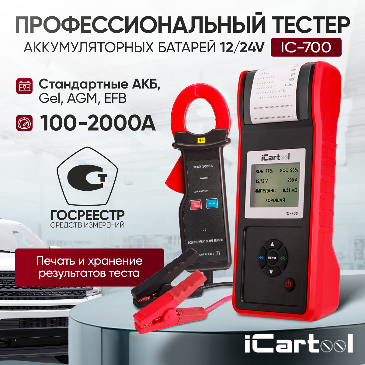 Функциональные возможности тестера АКБ iCartool IC-700