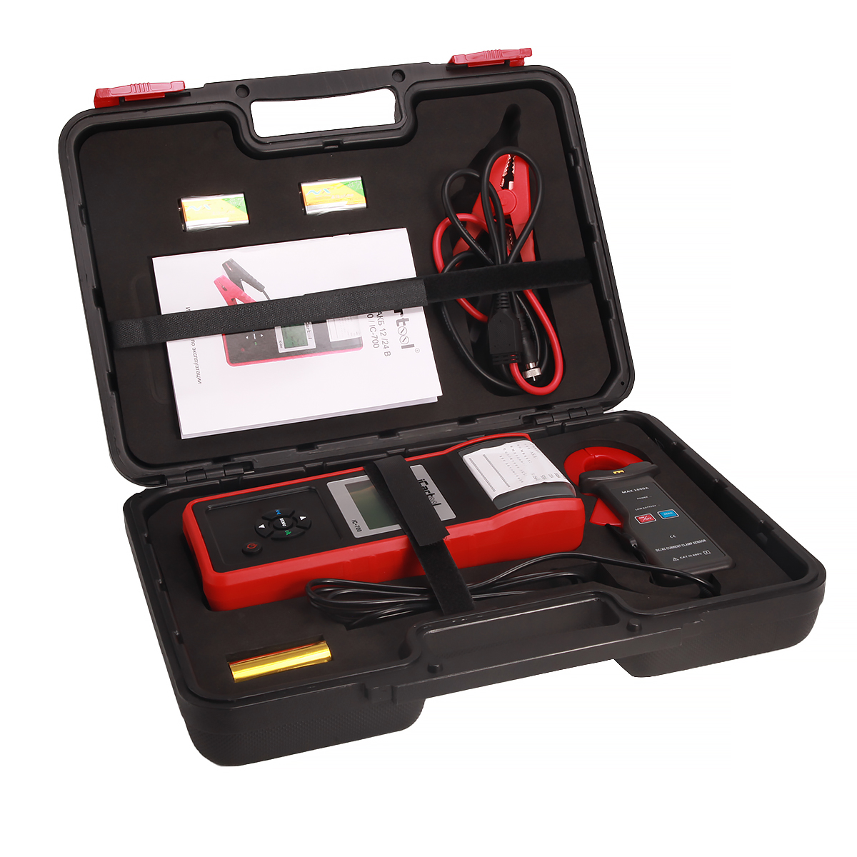 iCartool IC-700 Тестер аккумуляторных батарей автомобилей предназначен для проверки АКБ по самой современной технологии тестирования проводимости, быстро и точно измеряет ток пуска холодного двигателя, оценивает степень заряженности АКБ и определяет основные неисправности в системе пуска двигателя и зарядки, что позволяет точно и аккуратно выявлять неисправности и ускоряет процесс ремонта. Оснащен встроенным принтером. Применяется при техническом обслуживании аккумуляторных батарей автомобилей и в ремонтных мастерских.