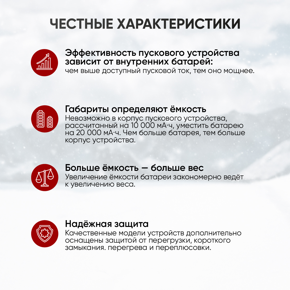 - Защита от переполюсовки – исключает ошибки при подключении к клеммам АКБ
