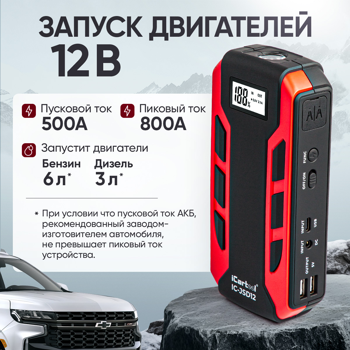 Обзор портативного бустера для автомобиля IC-JSD12