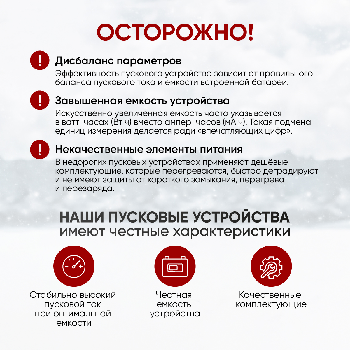 - Функция подзарядки АКБ перед запуском двигателя