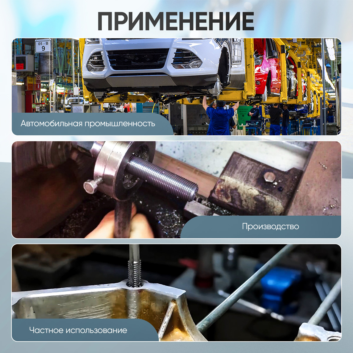 - Метчики комплектные (2 шт): М2×0,4; М3×0,5; М4×0,7; М5×0,8; М6×0,75; М6×1; М7×0,75; М7×1; М8×0,75; М8×1; М8×1,25; М9×0,75; М9×1; М9×1,25; М10×0,75; М10×1; М10×1,25; М10×1,5; М11×0,75; М11×1; М11×1,25; М11×1,5; М12×0,75; М12×1; М12×1,25; М12×1,5; М12×1,75; М14×1; М14×1,25; М14×1,5; М14×2; М16×1; М16×1,5; М16×2; М18×1,5 – 2 по 35 шт.