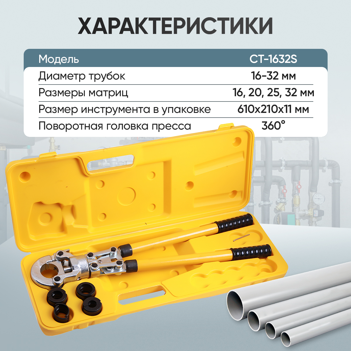 Пресс ручной для обжима металлопластиковых труб 16-20-26-32 мм, Car-Tool CT-1632S купить на сайте АвтоСканеры.RU