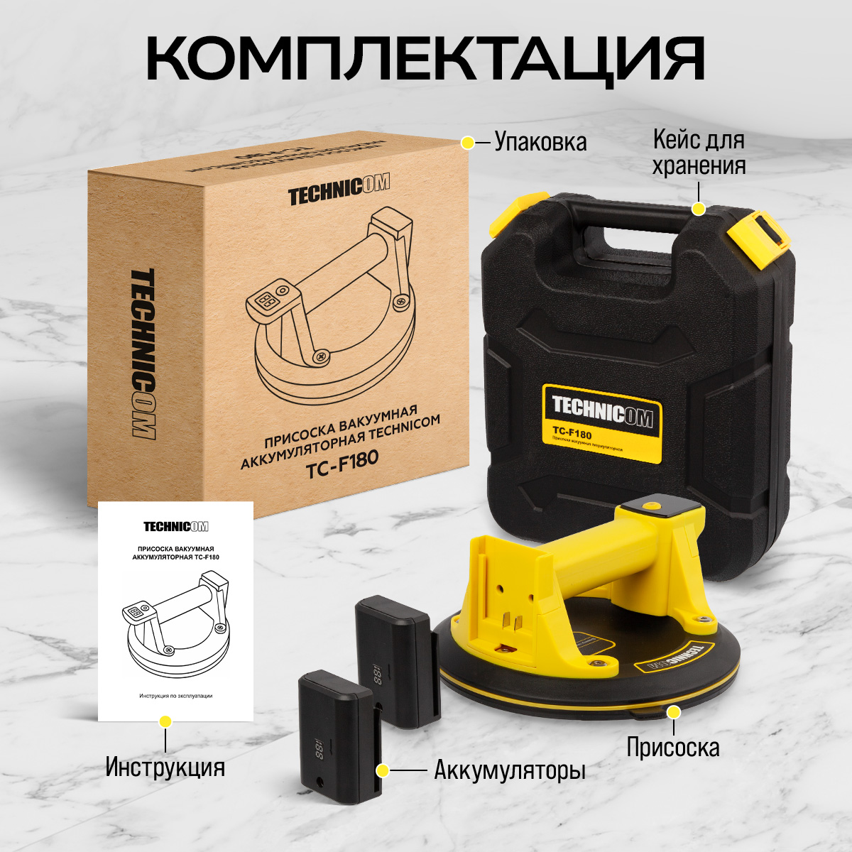 Присоска вакуумная аккумуляторная TECHNICOM TC-F180