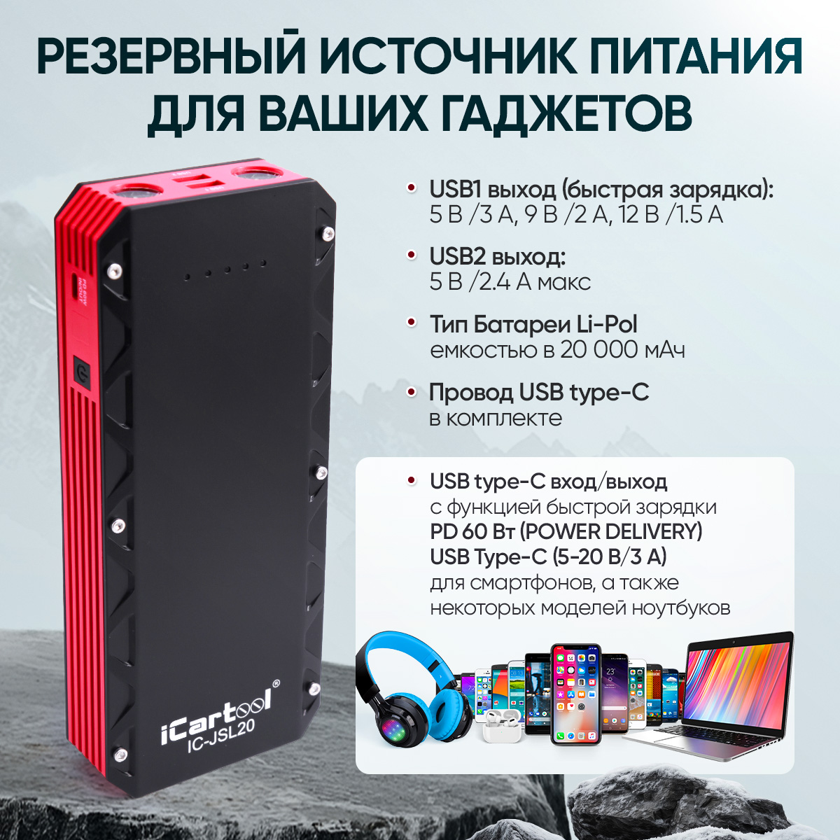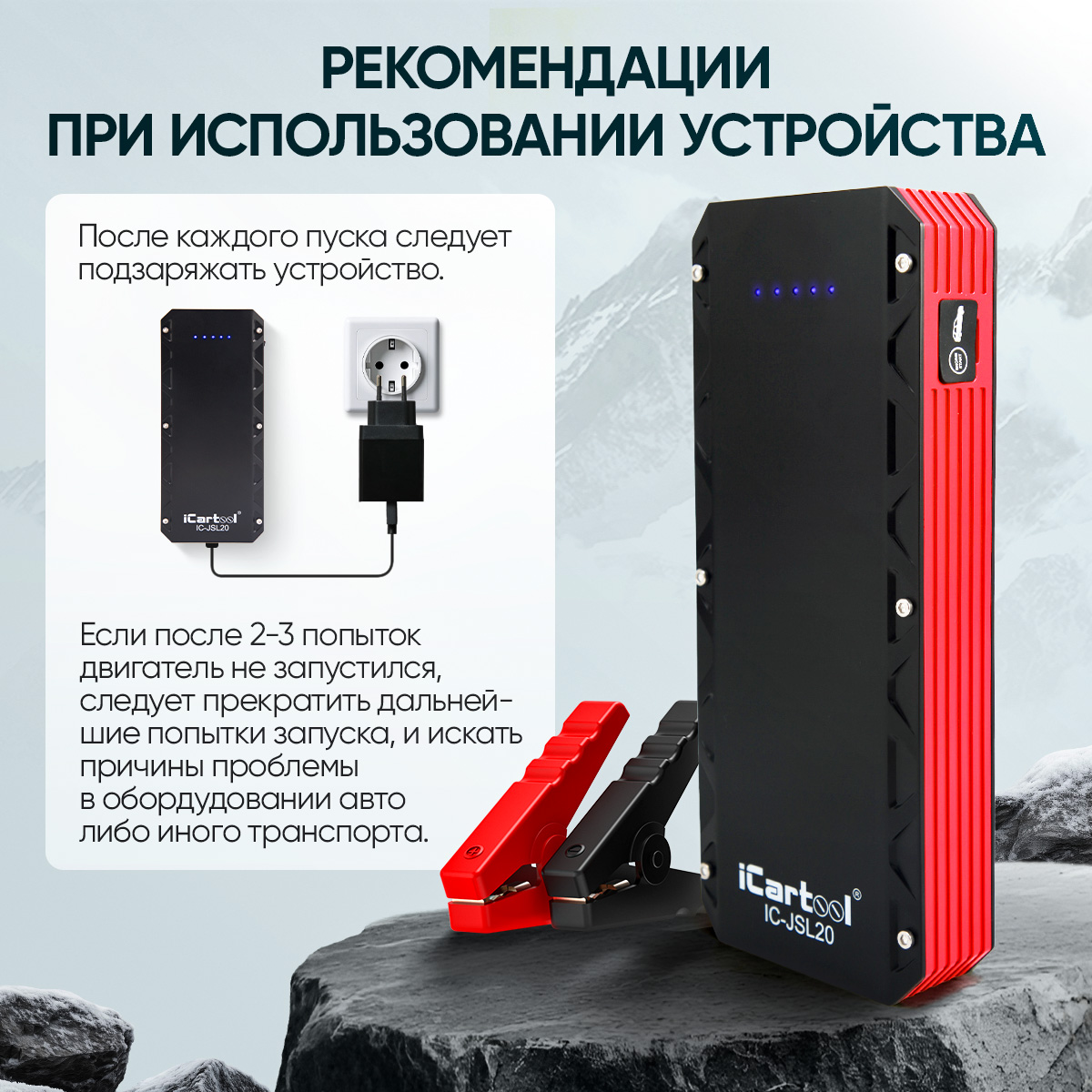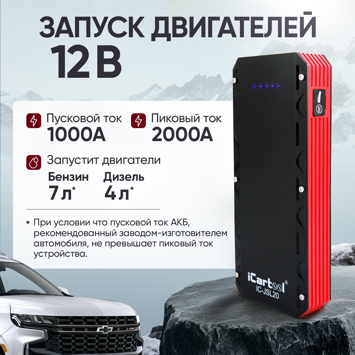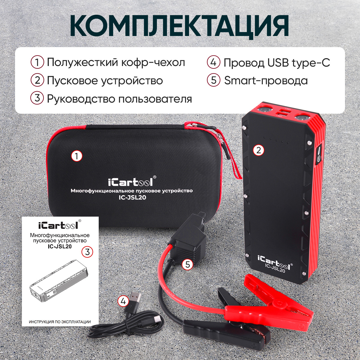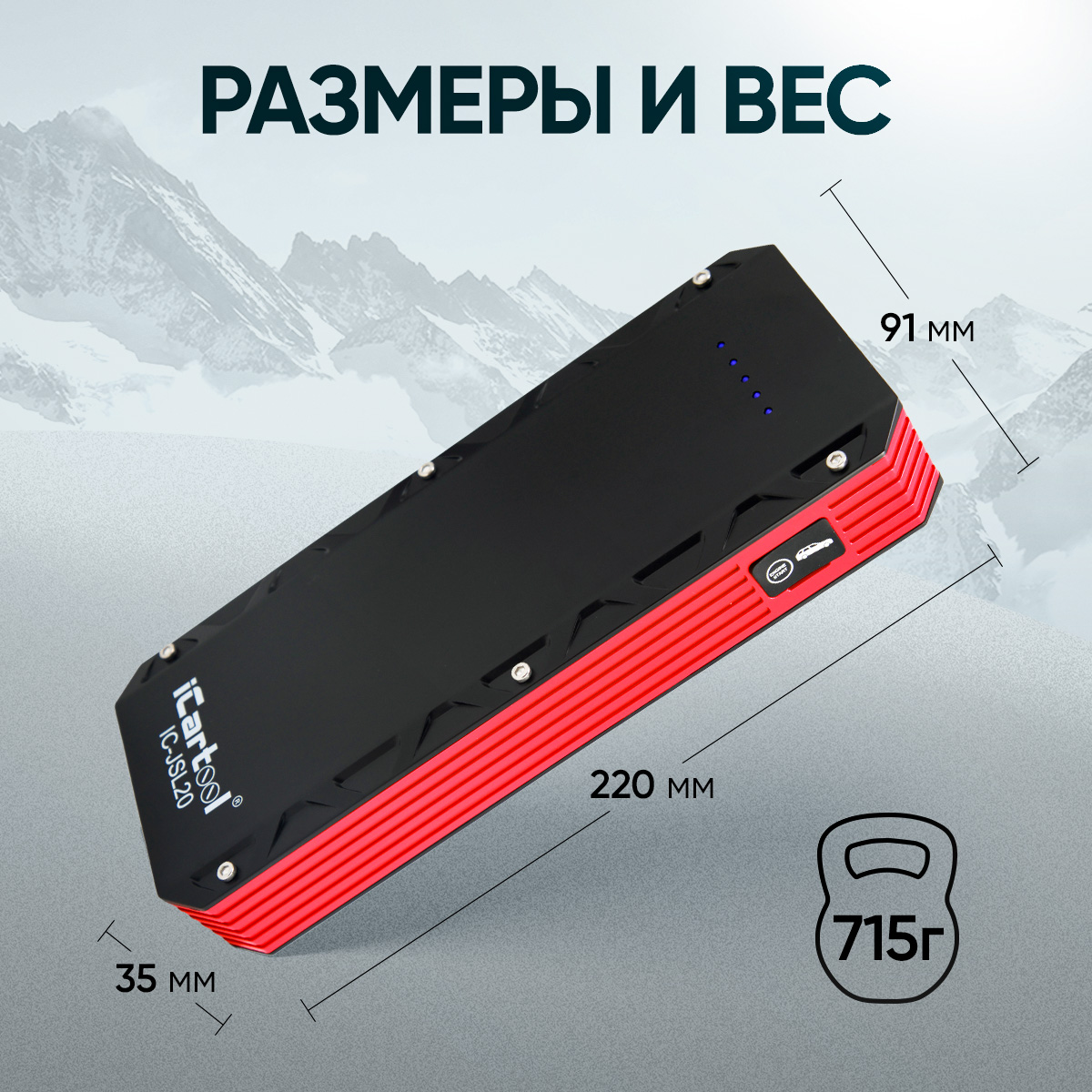 Многофункциональное пусковое устройство для автомобиля iCartool IC-JSL20 представляет собой легкий, компактный, один и самых мощных в нашей линейке, современный и высокотехнологичный, а также удобный и простой в использовании гаджет, предназначенный для решения широкого спектра задач.