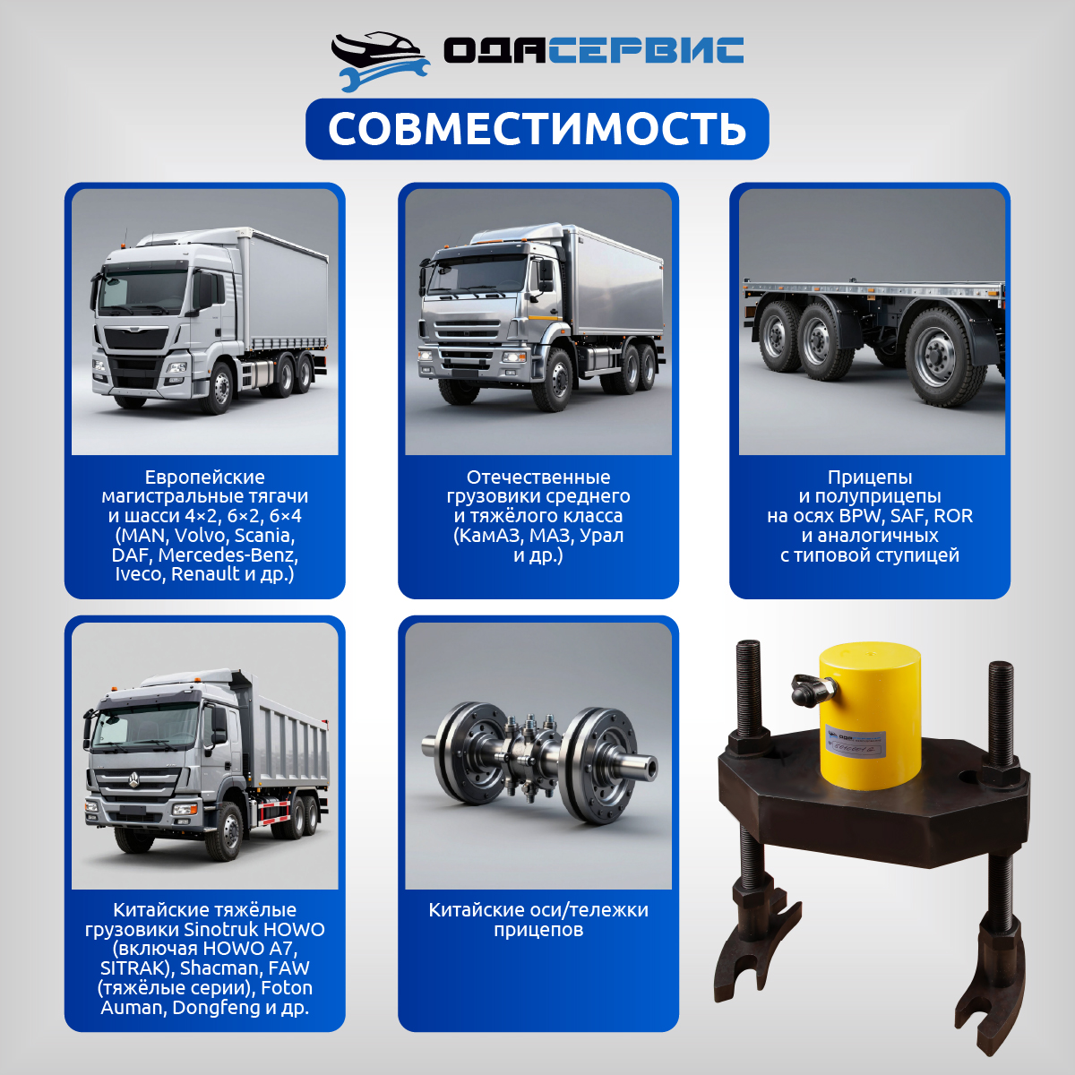 Такой съёмник дополняет линейку профессионального оборудования ОДА Сервис и станет основным инструментом для регулярной работы с ходовой частью грузового транспорта.