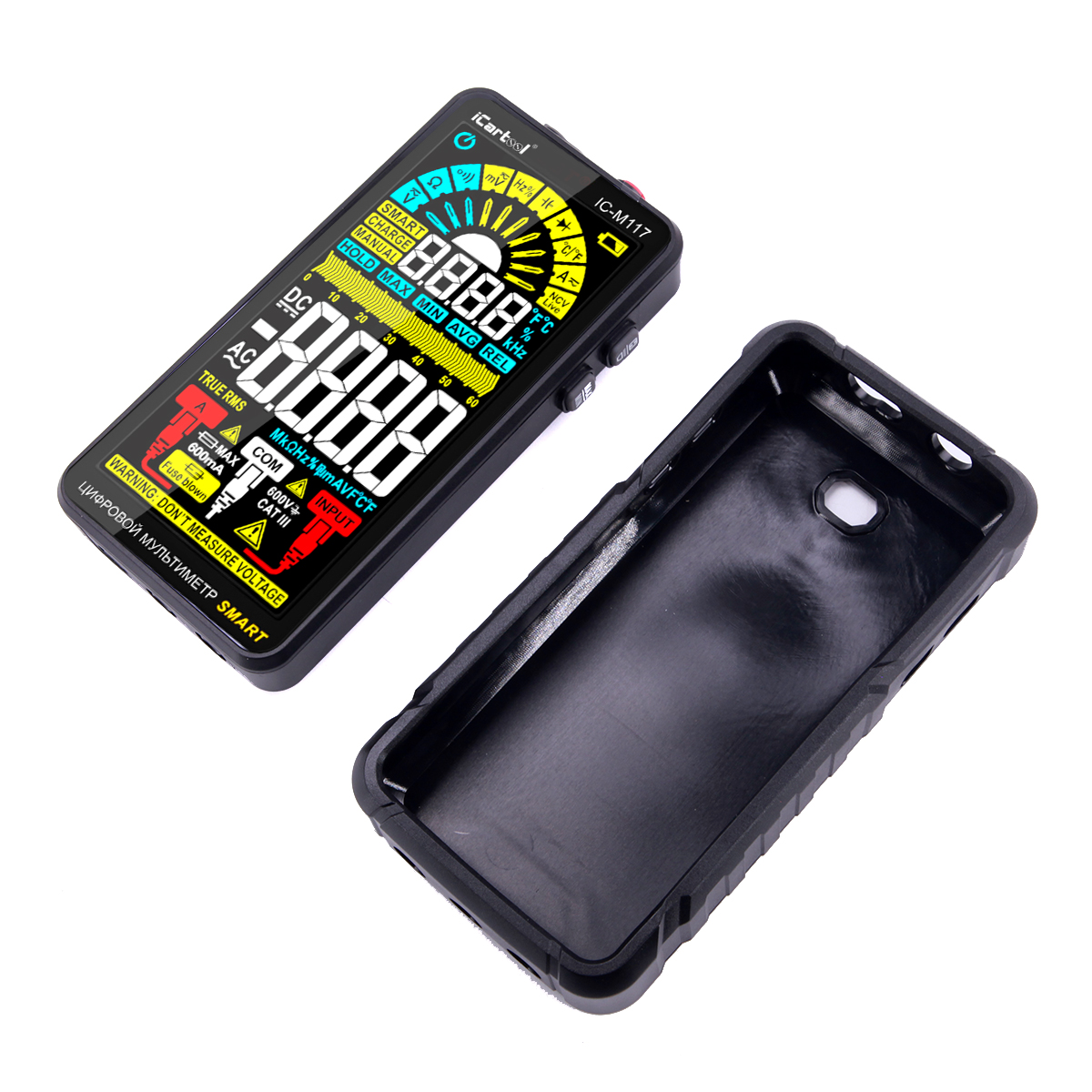 iCartool IC-M117 интеллектуальный цифровой мультиметр с автоматическим выбором режима измерения, большим многофункциональным цветным дисплеем, широким набором дополнительных функций и встроенным Li-ion аккумулятором. Имеет разрядность дисплея 6000 отсчетов и рейтинг электробезопасности CAT III 600V. Аккумуляторный мультиметр работает в режиме TrueRMS.
