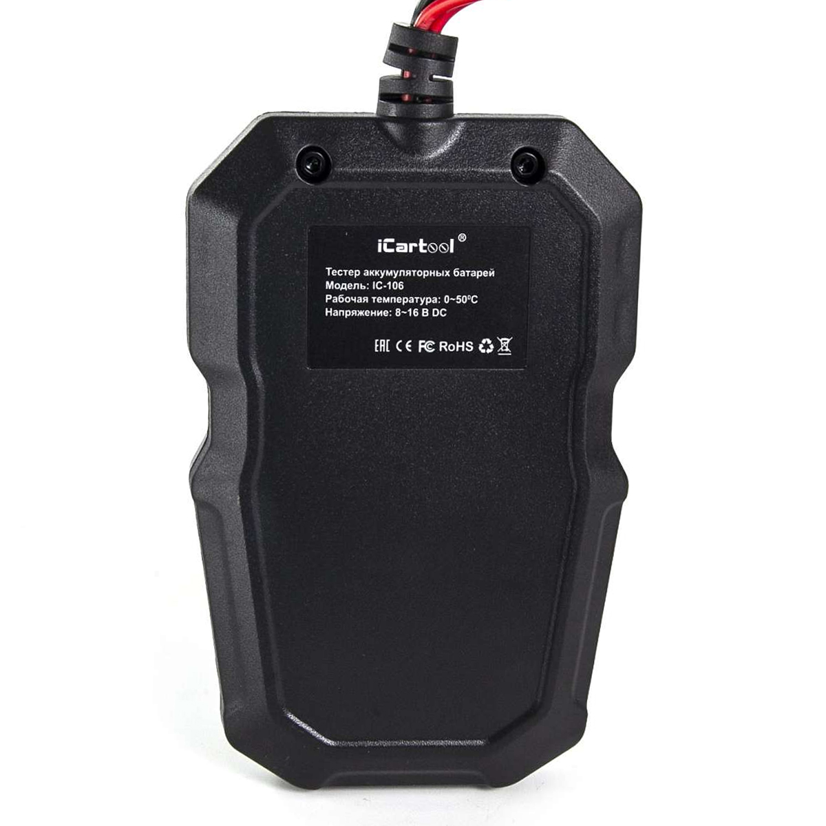 iCarTool IC-106 - это тестер аккумуляторных батарей с напряжением 12В. С его помощью вы сможете быстро и эффективно оценить состояние вашего аккумулятора, а также проверить системы зарядки и пуска автомобиля. Тестер поддерживает все основные типы АКБ: свинцово-кислотные, AGM с плоскими электродами, спиральные AGM, GEL и EFB.