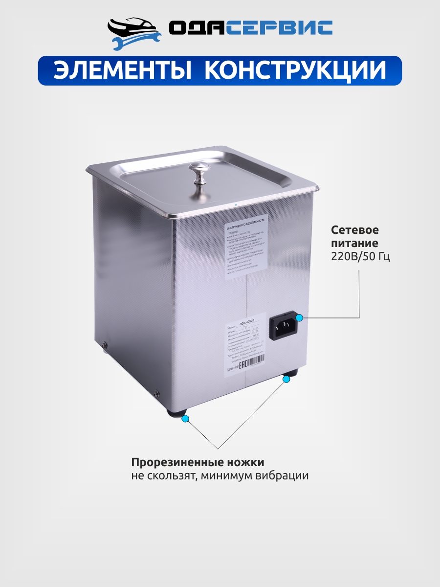 ODA-DS20 - это ультразвуковая ванна с аналоговым управлением, подогревом, с функциями дегазации (повышает КПД) и модуляции (оптимальное распределение частоты), объемом 2 литра.