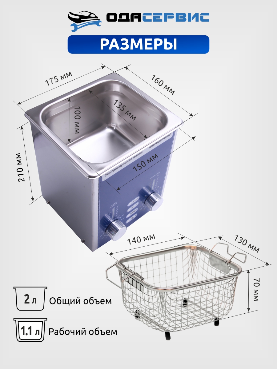*Обратите внимание: объем ванны указанный в Наименовании, заводом изготовителем, рассчитывается по формуле ДхШхГ, где Д (длина) и Ш (ширина) измеряются по верхней внутренней границе бака, Г ( глубина) максимальное расстояние от верхней кромки бака до его дна. Реальный объем ванны в литрах, отличаться от заявленного, т.к. конструкция бака конусообразная. При выборе ультразвуковой ванны ориентируйтесь на ее рабочий объем.