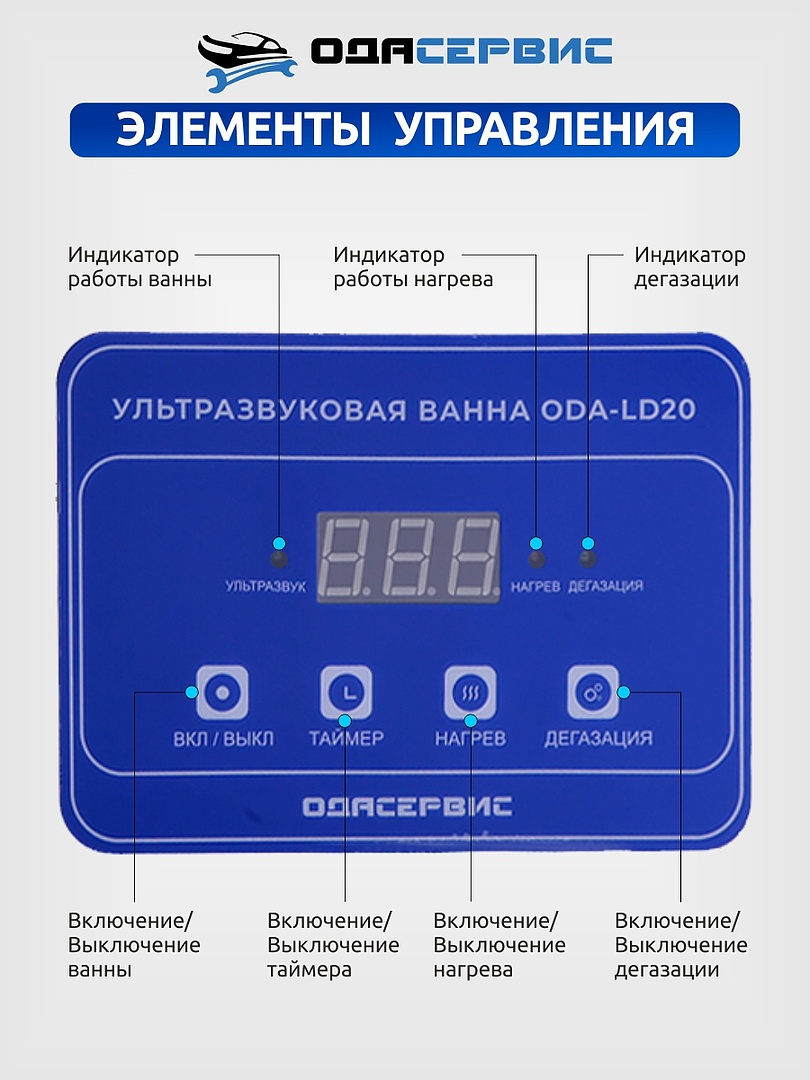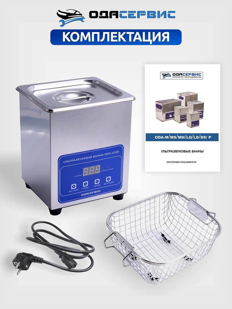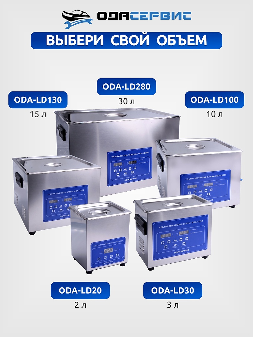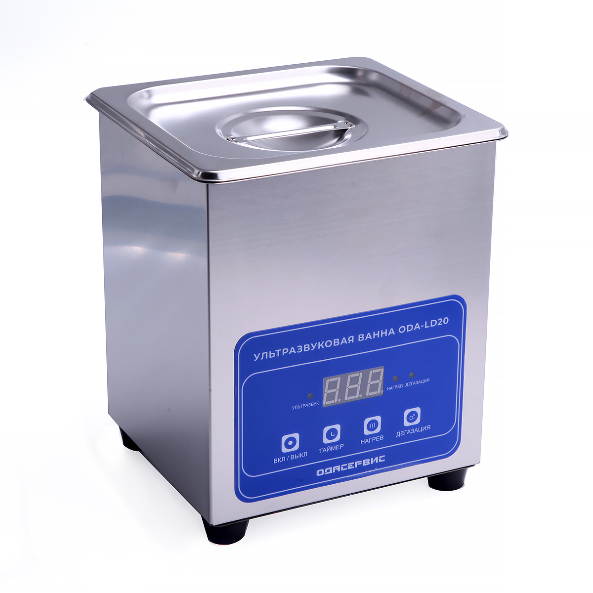 ODA-LD20 – ультразвуковая ванна объемом 2 литра с электронным управлением и дегазацией. Оснащена таймером с фиксированными значениями и подогревом до 65°С. Ванна и корзина сделаны из нержавеющей стали SUS304. Имеет частоту ультразвука 40кГц. Подходит для очистки маслянистых, смолистых, жировых и карбоновых отложений. Также возможно использование для стерилизации различных предметов.