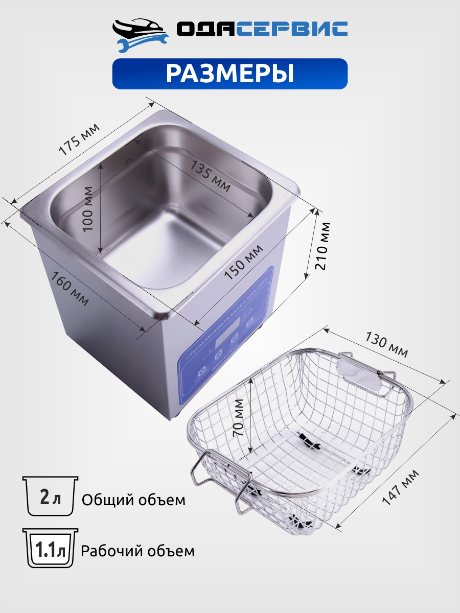 *Обратите внимание: объем ванны указанный в Наименовании, заводом изготовителем, рассчитывается по формуле ДхШхГ, где Д (длина) и Ш (ширина) измеряются по верхней внутренней границе бака, Г ( глубина) максимальное расстояние от верхней кромки бака до его дна. Реальный объем ванны в литрах, отличаться от заявленного, т.к. конструкция бака конусообразная. При выборе ультразвуковой ванны ориентируйтесь на ее рабочий объем.