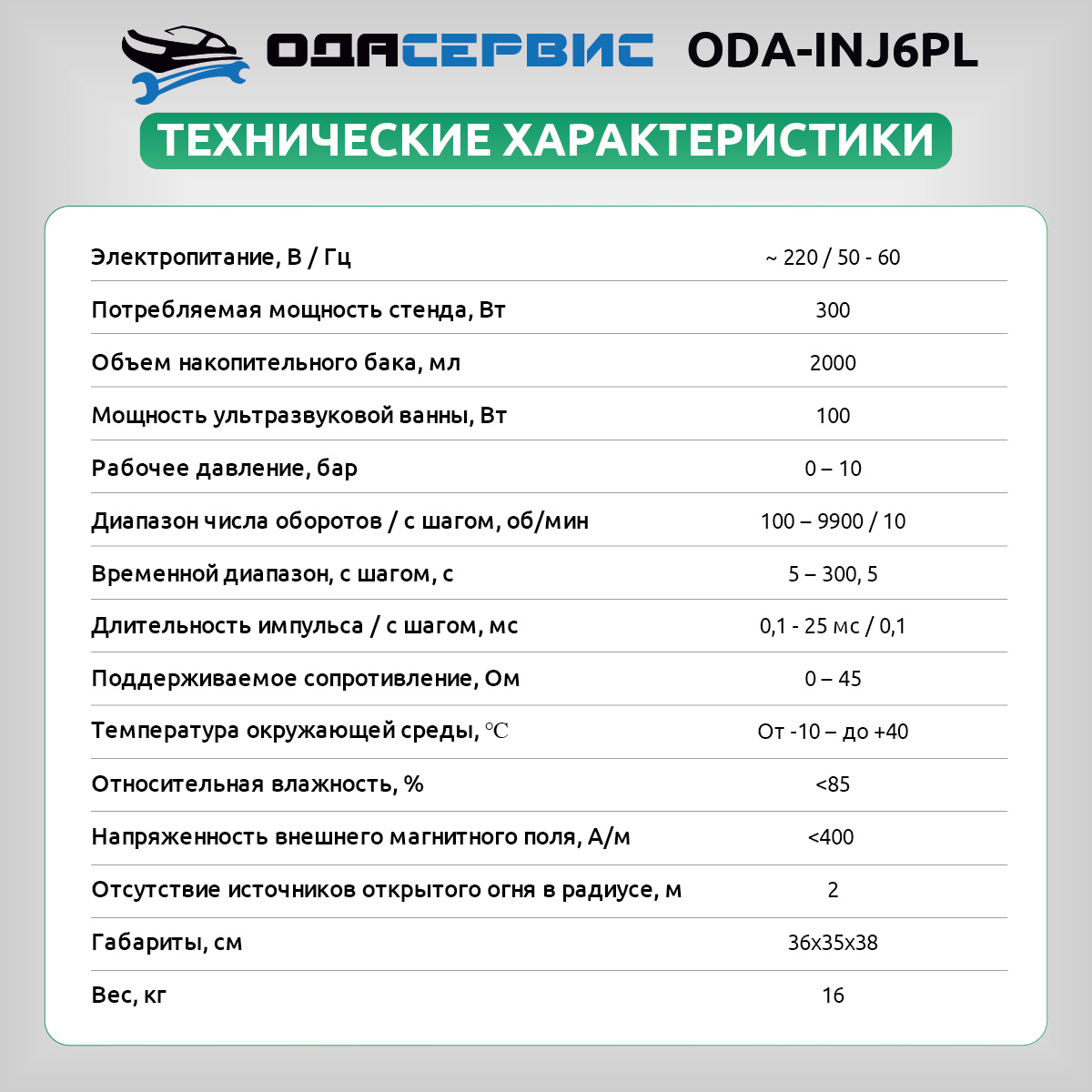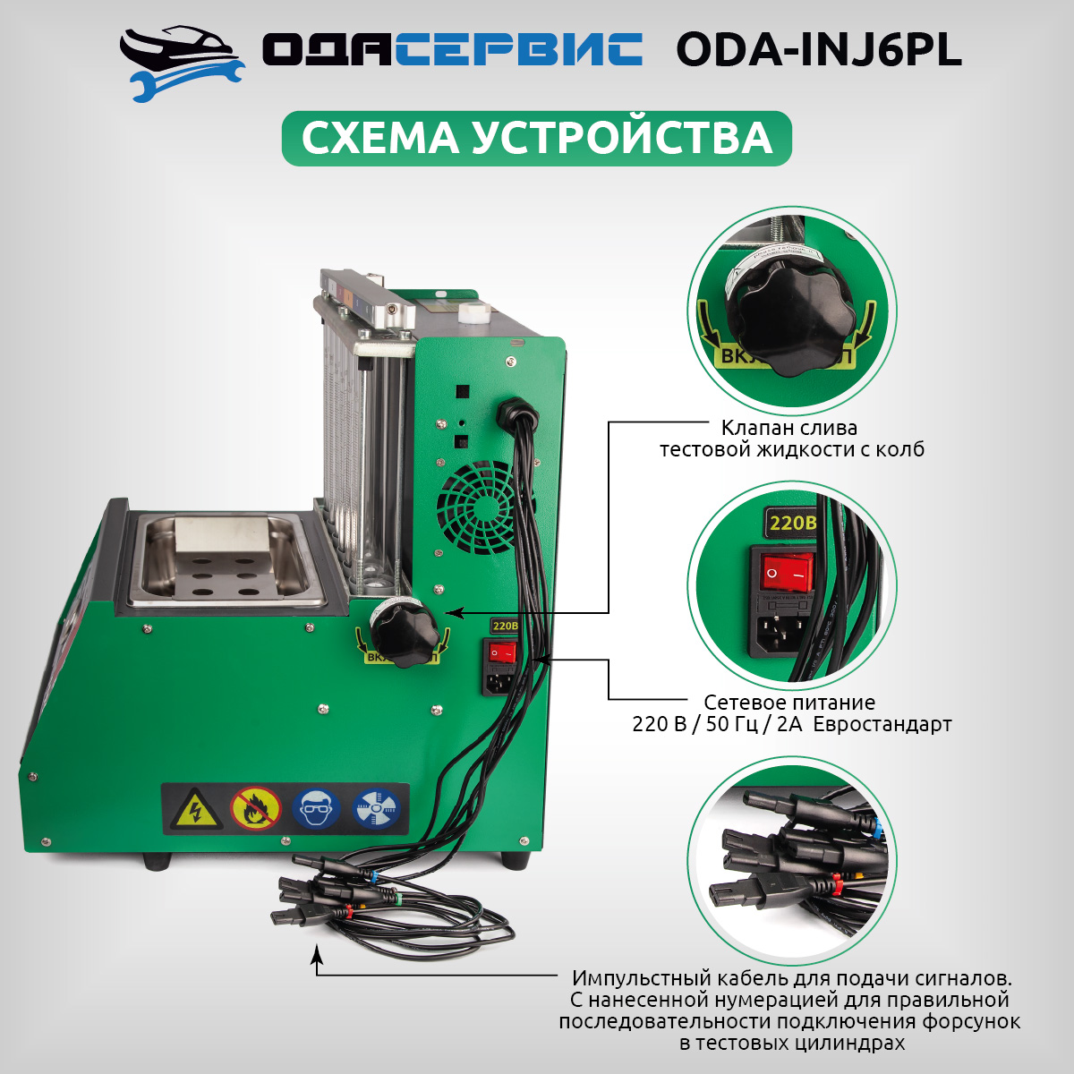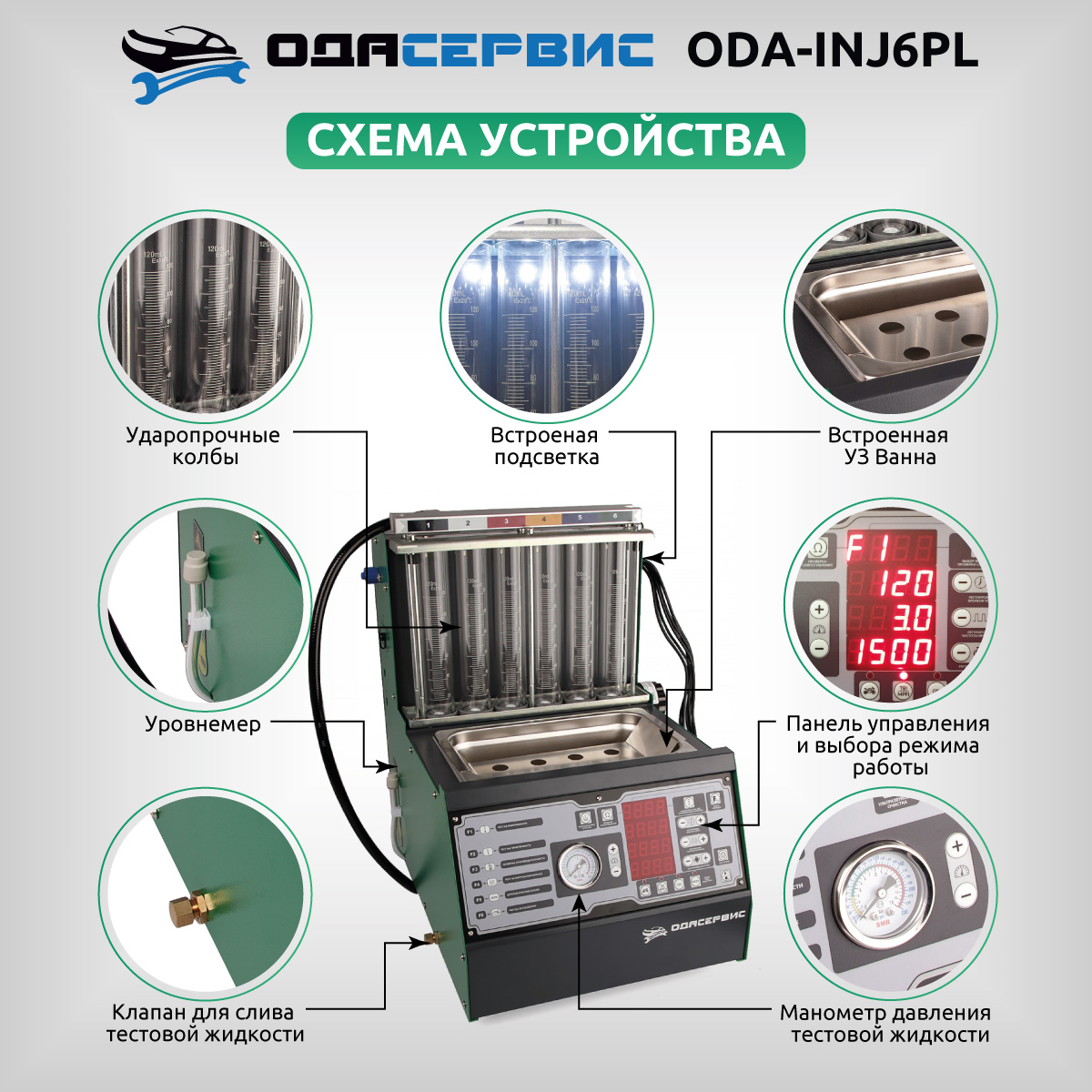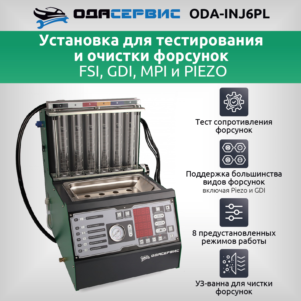 Новейшая модель в линейке стендов ODA-INJ6PL для тестирования и ультразвуковой очистки бензиновых форсунок от компании ОДА Сервис. Стенд позволит выявить и устранить практически все неисправности форсунок, связанные с загрязнением, отложениями и неисправностями в обмотке. С его помощью вы сможете смоделировать работу форсунок на автомобиле, проверить их герметичность, сопротивление и т.п. Отличительной чертой стенда является тестирование форсунок Piezo и GDI, а также тест сопротивления форсунок.
