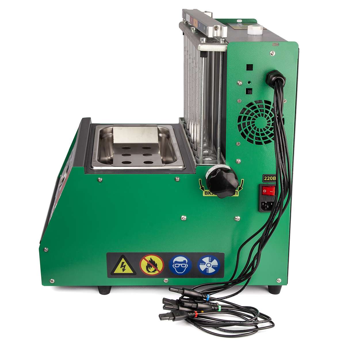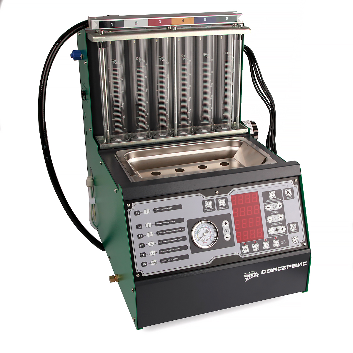 Тестирует и очищает до 6 форсунок одновременно, при необходимости проводит тест на сопротивление одной форсунки на выбор.