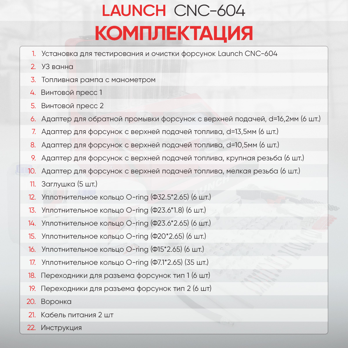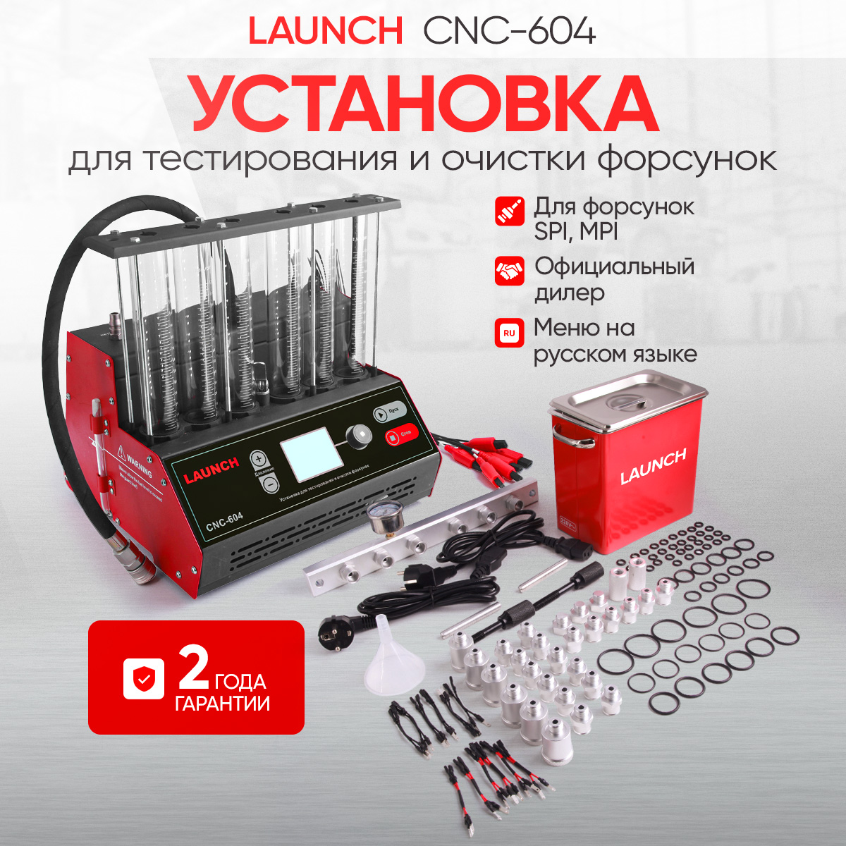 Launch CNC-604 - новинка 2024, облегченная версия стенда для тестирования и ультразвуковой очистки форсунок CNC-603A. Отличительной чертой CNC-604 являются малые габариты, отдельно стоящая ультразвуковая ванна и ручной слив жидкости. По режимам работы и комплекту адаптеров, стенд идентичен 603A.
