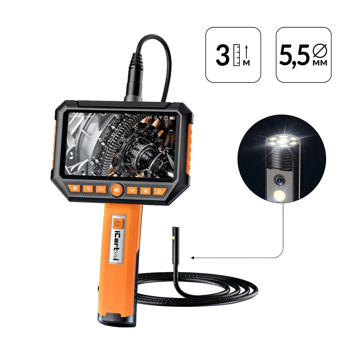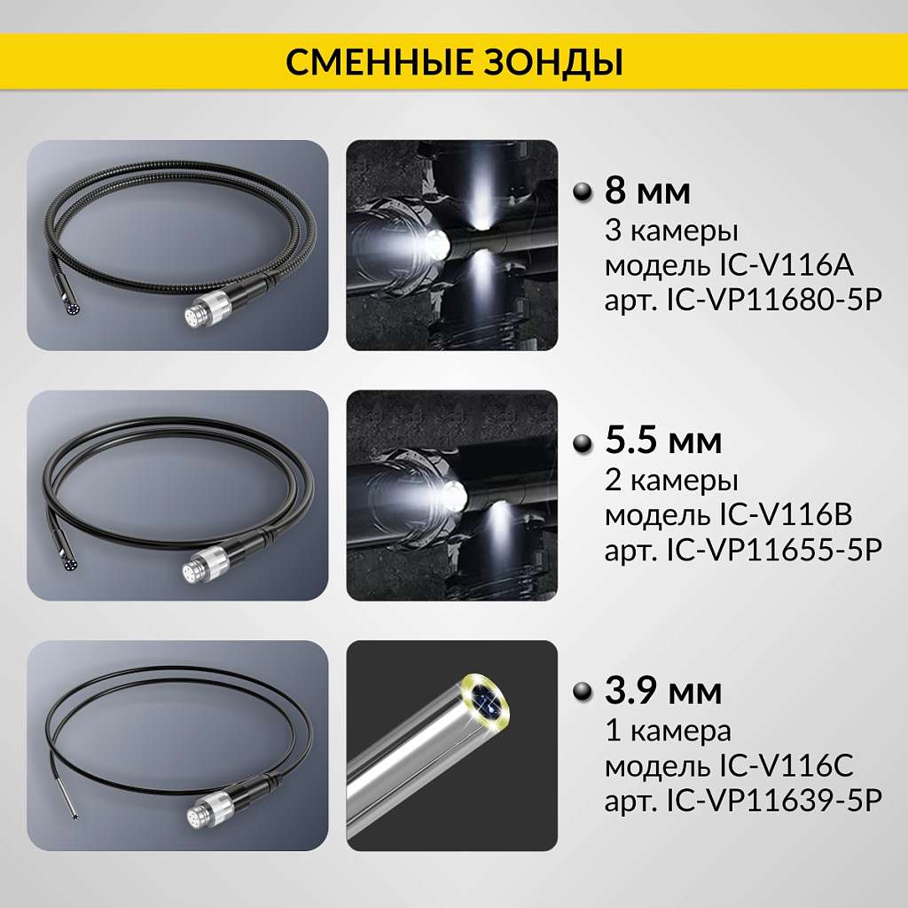 Промышленный видеоэндоскоп iCartool IC-V116B-3 с длиной зонда 3 метра и двумя камерами – это высокотехнологичное устройство, предназначенное для инспекции труднодоступных мест и внутренних полостей. Идеально подходит для использования в таких отраслях, как машиностроение, строительство, энергетика и ремонт.