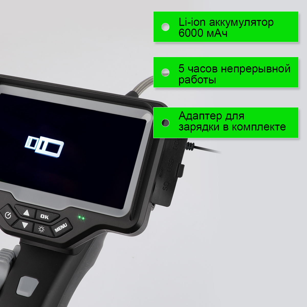 - Возможность длительной работы до 5 часов без подзарядки