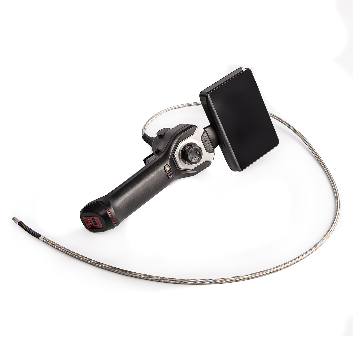 Дисплей эндоскопа диагональю 4,5” имеет высокую четкость, регулировку угла наклона и функцию 5-кратного цифрового увеличения. Корпус эндоскопа легкий, удобно лежит в руке, оснащен аккумулятором для продолжительной работы.